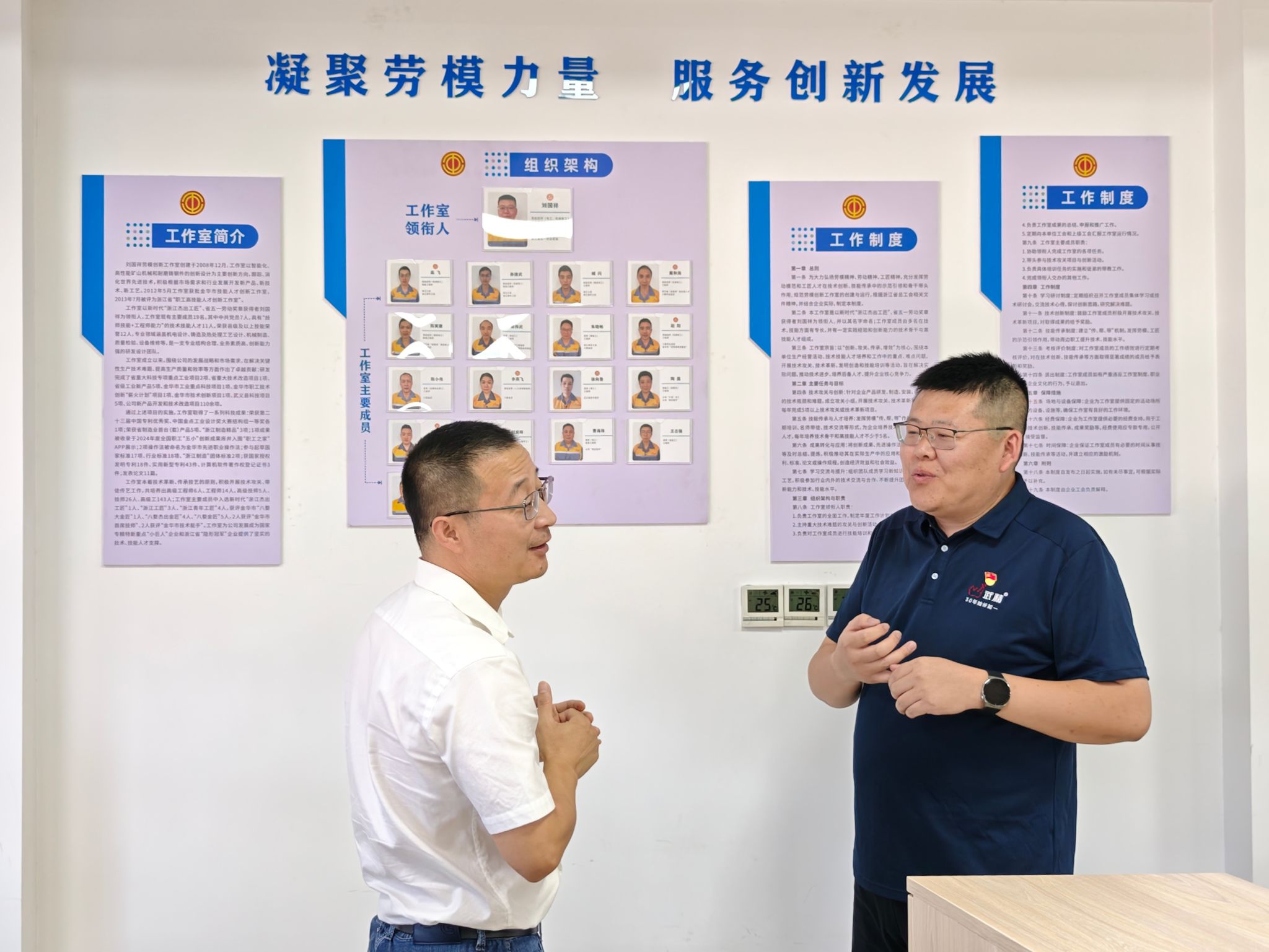 仪式结束后,在浙江省五一劳动奖章、浙江杰出工匠刘国祥大师的带领下,参观了劳模创新工作室,深入探讨了机电工程学院党支部培养师资力量及人才的可行方案。