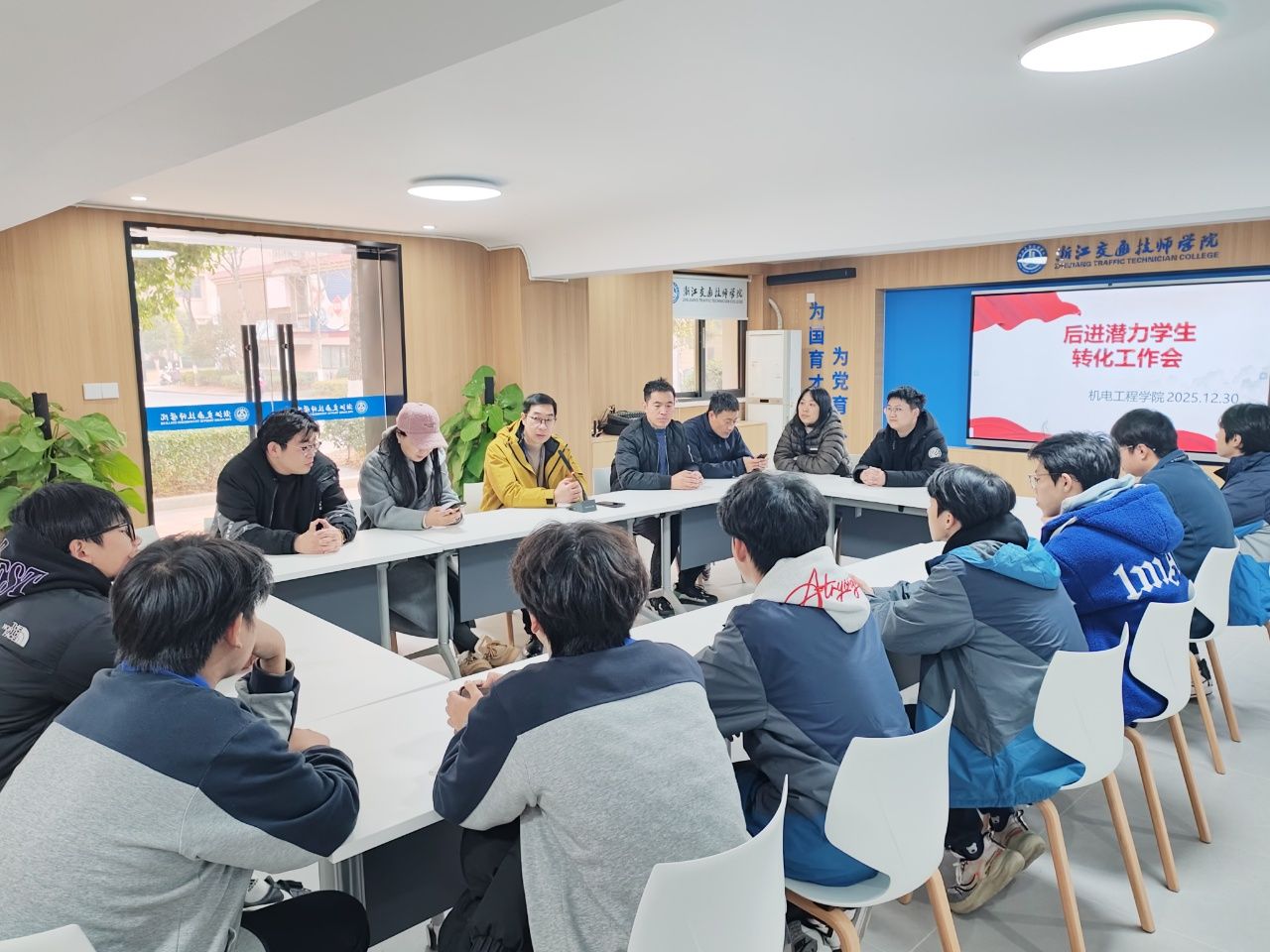 2025年,机电工程学院党支部始终以创新为引领,紧密融合专业特色,将党建工作深度嵌入人才培养全过程。在扎实推进“强化理论武装、传承工匠精神、锤炼过硬作风、担当作为引领”四项核心工程基础上,创新实施“红色引擎·成长护航”后进生转化工程,以“党建+育人”双轮驱动,建设多样化课堂,为机电学子注入强劲的成长动力。