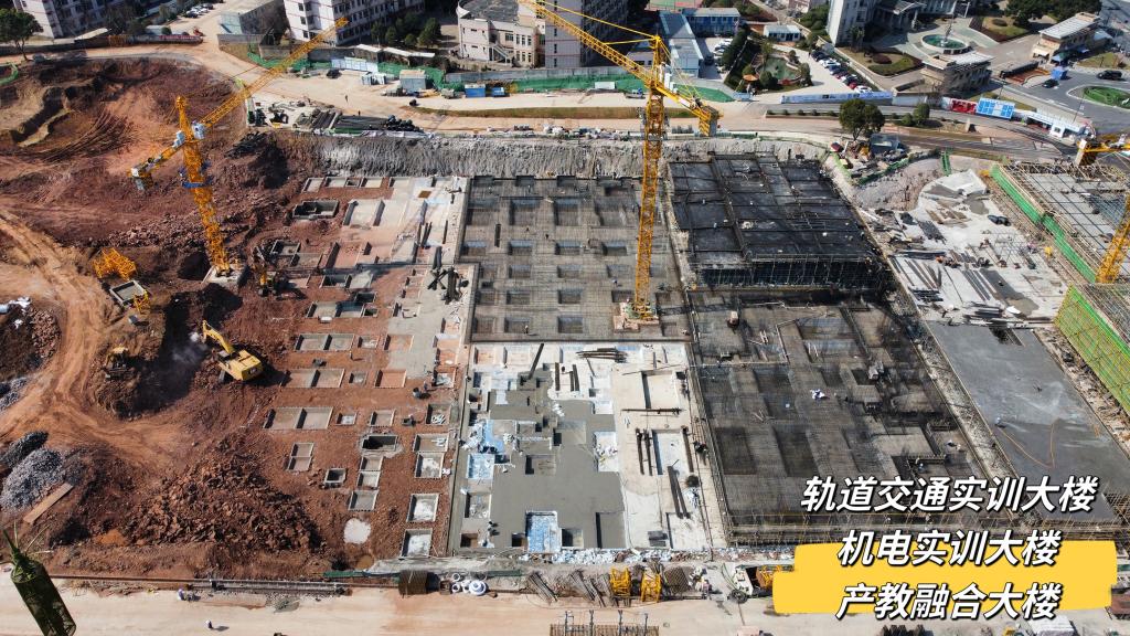 轨道交通实训大楼、机电实训大楼、产教融合大楼地下室结构施工完成35%