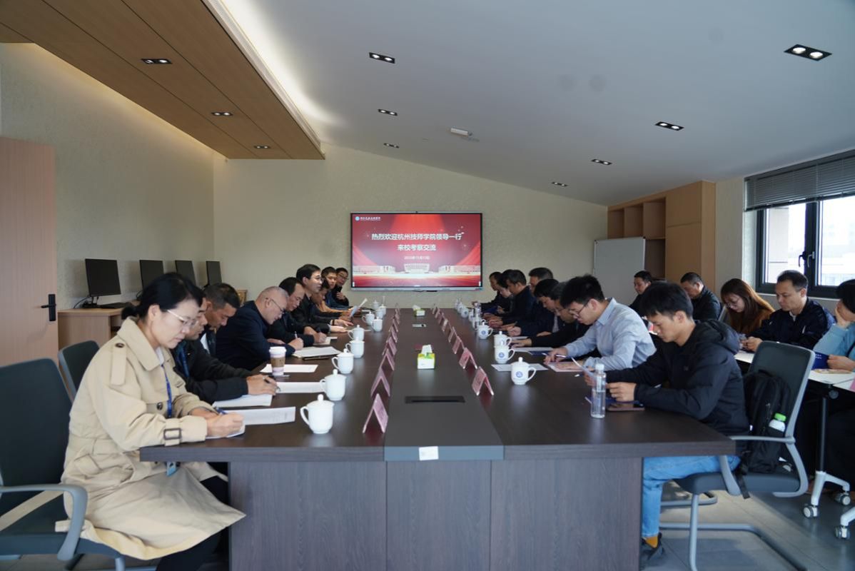 11月13日,杭州技师学院党政办、学生处等部门负责人及工作人员一行17人,在宋佳君副校长的带领下,到我校考察交流。学校党委委员、副校长叶智勇及相关部门负责人陪同并参加座谈。