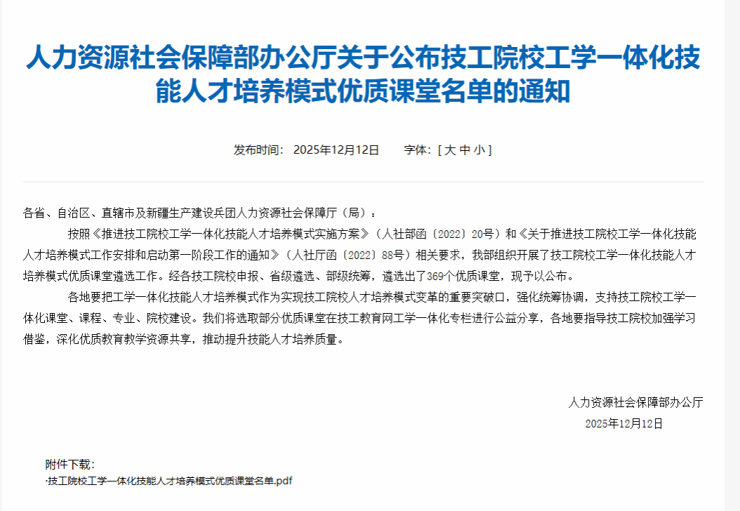 未来,学校将以此次入选为契机,充分发挥国家级优质课堂的示范引领作用,总结推广成熟的教学经验与建设模式,推动全校教学质量整体提升。同时,持续深化工学一体化教学改革,进一步加强优质教学资源建设,完善技能人才培养体系,为培养更多德技并修的高素质技能人才、服务区域产业发展与国家技能强国战略贡献更大力量!
