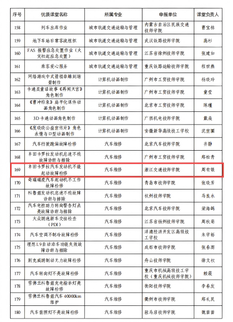 此次技工院校工学一体化技能人才培养模式优质课堂遴选工作,是人力资源和社会保障部落实技能人才培养提质增效要求的重要举措,依托省级工学一体化优质课堂遴选成果开展层层筛选。此前在浙江省人力资源和社会保障厅组织的省级工学一体化优质课堂评选中,我校三门课堂成功入选全省42个省级优质课堂,其中《丰田卡罗拉汽车发动机不能起动故障检修》《比亚迪E5汽车传动异响故障检修》两门课堂以优异表现跻身全省前30,获荐代表浙江参与国家级遴选。