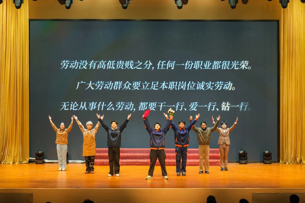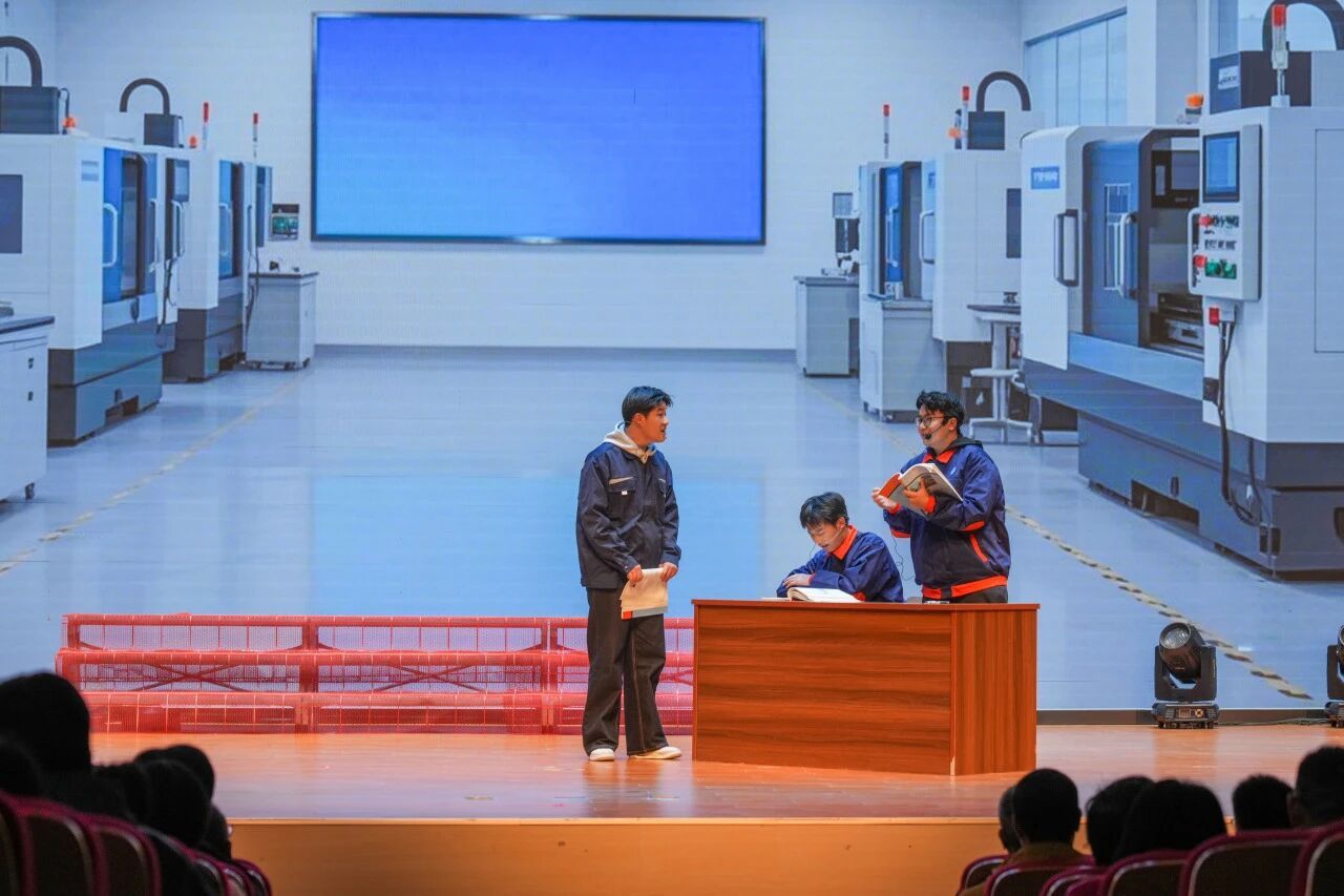 人文学院高职考班师生原创剧目《少年的匠心觉醒》,取材于《简单相信,傻傻坚持》《品质》《走进大国工匠》三篇课文,通过主人公在数控实训课堂的成长与追梦,串联起樊锦诗、格斯拉、李斌等人物的匠心故事,生动诠释“劳动光荣、技能报国”的职教育人理念。