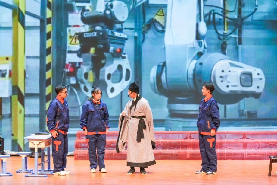 人文学院师生改编的《劝学新说——穿越千年的对话》,将荀子古训与当代职教特色相结合,用“科技助学”“多元成长”的剧情,诠释“学不可以已”的永恒真理。