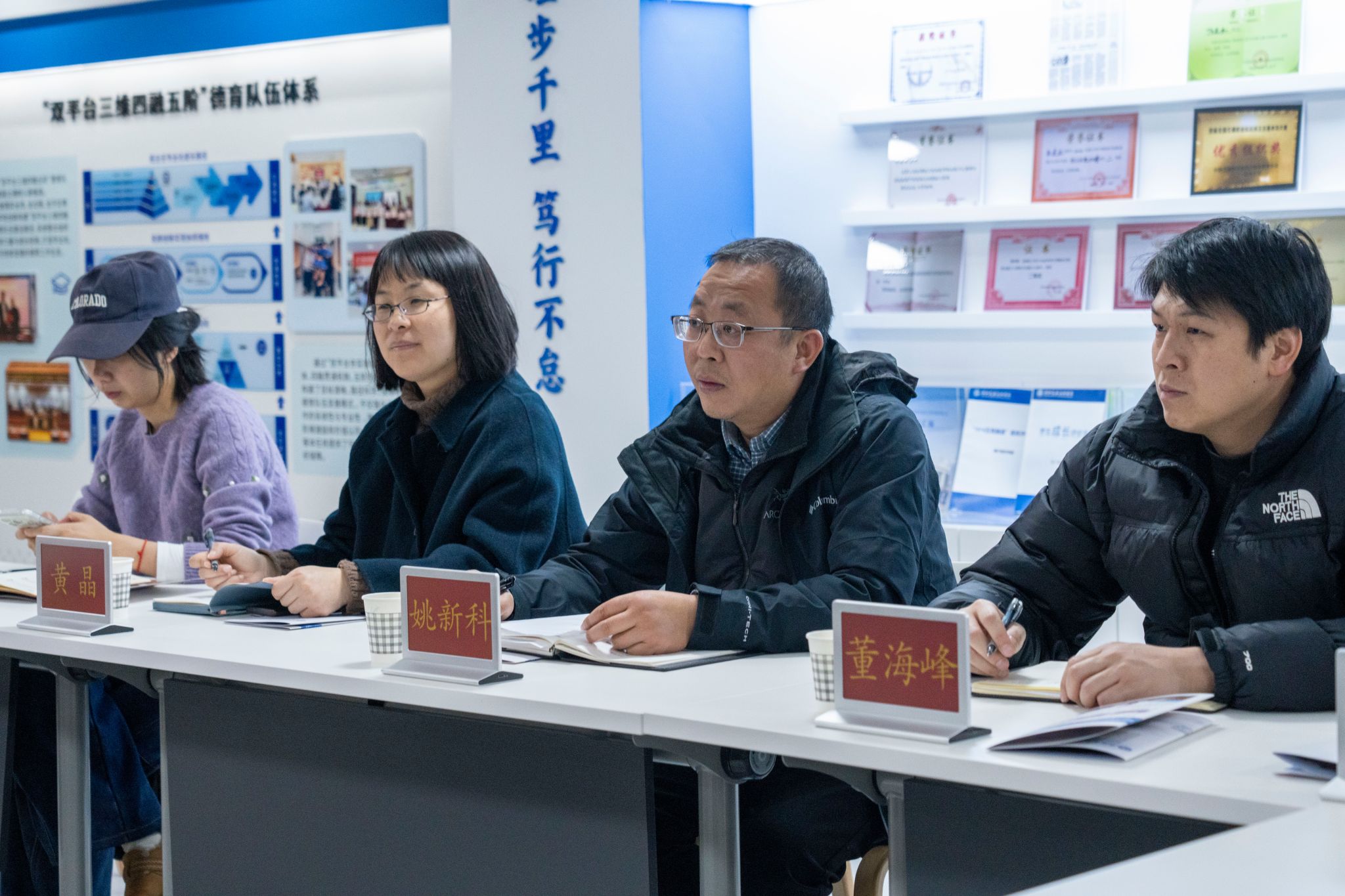 随后,双方在德育研创中心进行座谈交流。叶智勇副校长对衢州市技师学院一行的到来表示欢迎,并详细介绍了我校的办学历史、德育管理体系、学生管理模式以及辅导员队伍建设等情况。学生部蒋莘苗主任就我校“以小见大”构建1974行立德育体系的具体实践作了细致说明。双方围绕班主任队伍与辅导员队伍建设,晚自修分层德育教育,学籍管理,学生综合素养提升等共同关注的议题,展开了深入讨论和经验分享。