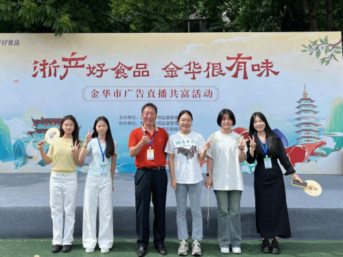 5月9日下午,金华市“浙产好食品、金华很有味”广告直播共富行动在浙江师范大学校园内火热开展。浙江交通技师学院财经商贸学院电子商务专业五名师生积极参与助农直播,以专业技能为金华特色农产品代言。本次活动以“直播带货”为实践载体,通过推广金华火腿、酥饼、糕点等特色农产品,助力乡村振兴,同时为电子商务专业学生搭建职业技能实战平台,展现新时代职教学子的责任担当与专业风采。