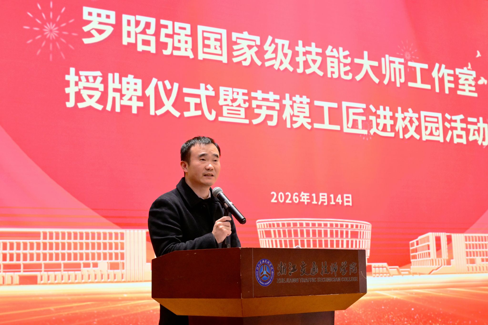 他表示,引入培育“技能大师工作室”,是学校引入行业顶级技术技能人才、推动专业发展、提升人才培养质量的关键举措。今天罗昭强大师将国家级技能大师工作室落户我校,标志着学校在工作室建设、高水平技能人才引育和产学研一体化方面迈出了坚实一步。