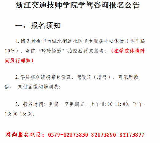 3.若发现教职人员违规收取任何财物或要求支付油费、修理费、考试疏通费等额外费用,请向学院举报,举报电话:057982173890、82173897。