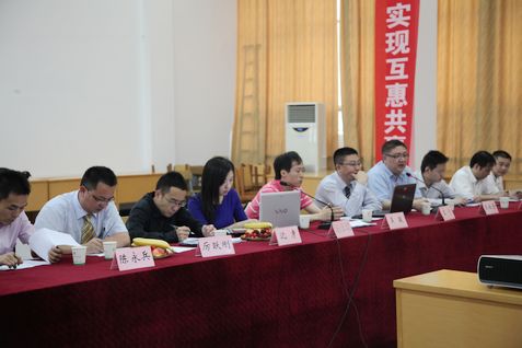 学院党委书记、院长唐锡军、副院长裘玉平、洪波及各相关部门领导出席在综合楼九楼召开的洽谈会。