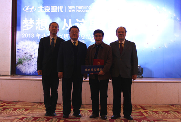 “北京现代班”年终总结会于12月17-19日在杭州桐庐召开,学院副院长裘玉平、汽车技术系主任“北京现代班”项目负责人应建明出席了会议。会上北京现代汽车有限公司对项目合作学校和核心教师进行了表彰。我院“北京现代班”项目2013年度工作考核总分名列第一,荣获“北京现代班”项目“2013年度突出贡献奖”,并获奖全新胜达汽车1辆和教学发动机5台;学院裘玉平副院长荣获“北京现代班”2013年度最佳支持奖;汽车技术系冯冰老师荣获“北京现代班”2013年度优秀教学成果奖。