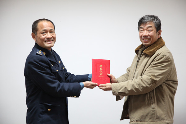 金华市道路运输管理局张伟副局长为培训老师颁发荣誉证书