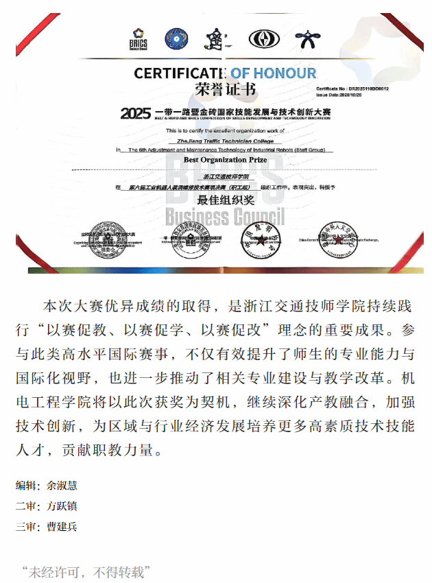 下一条:浙江交通技师学院师生在金砖国家技能大...