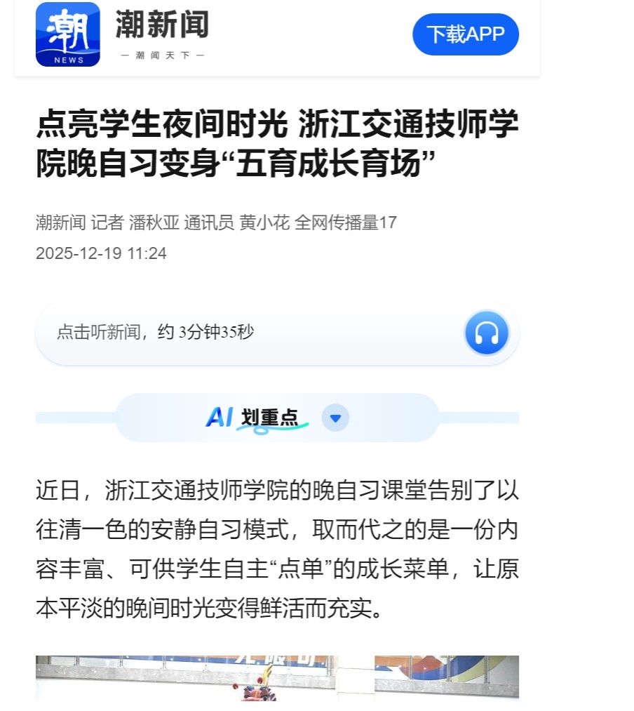 上一条:浙江交通技师学院:晚自习变身“五育成...