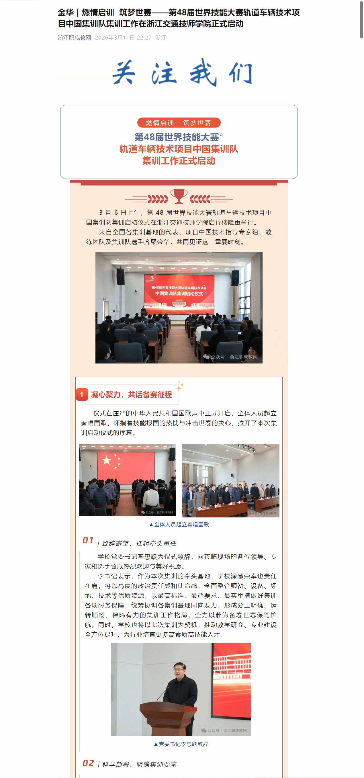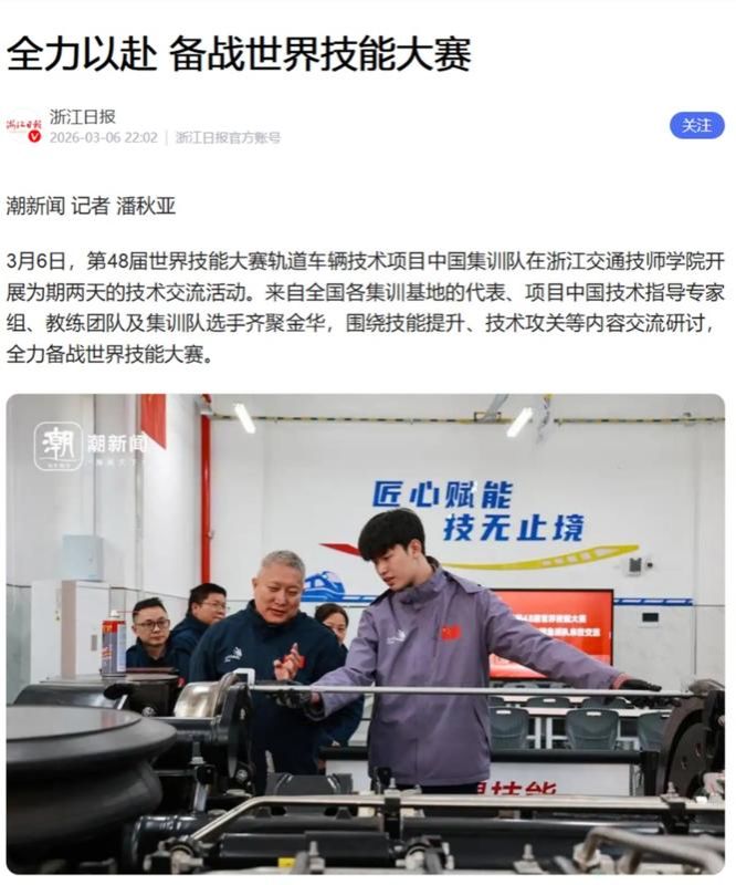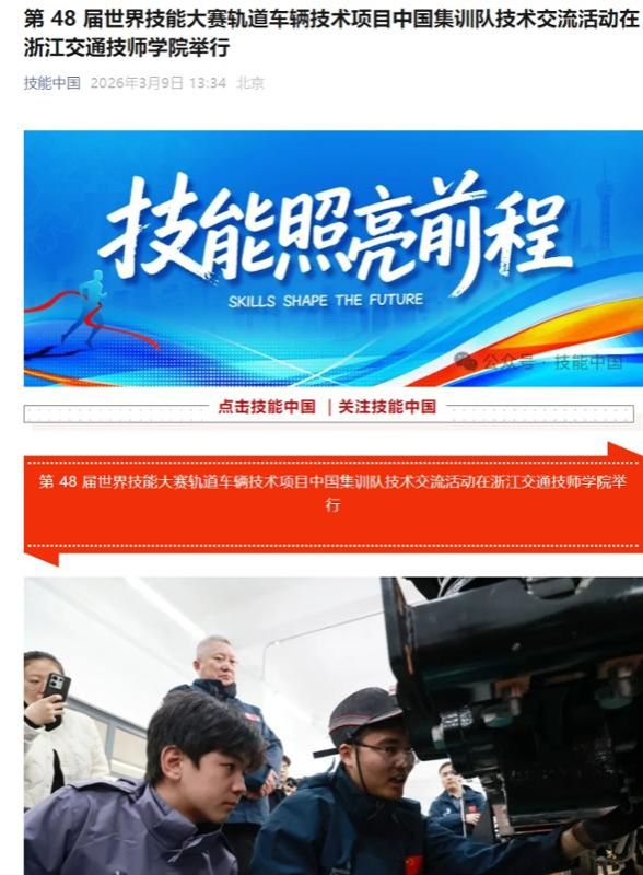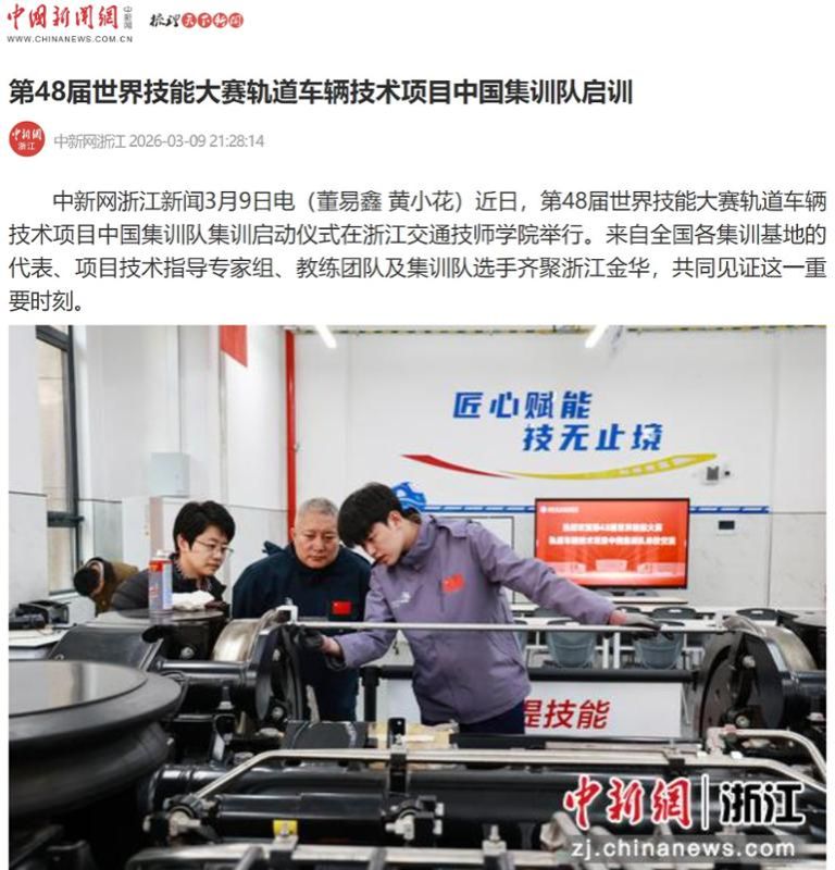 第48届世界技能大赛轨道车辆技术项目中国集训队集训工作在浙江交通技师学院正式启动(浙江职成教网 2026.3.11)