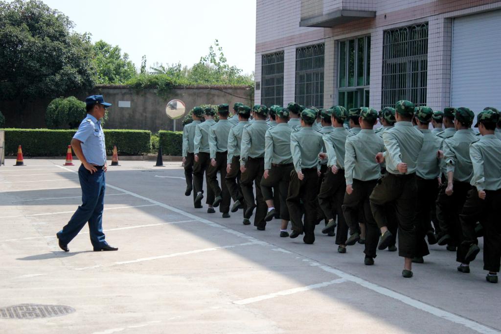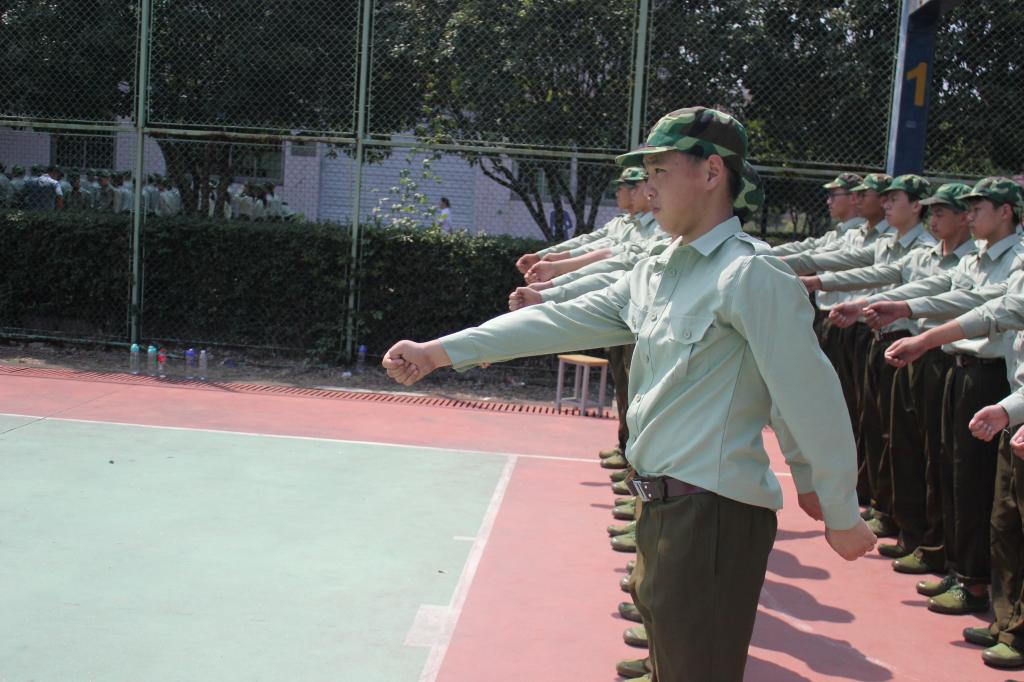 在教官的亲身示范及手把手的指导下同学们反复练习,领会动作要领。面对学起来相对困难的同学,教官单独训练,直至真正领会动作要领。纵使汗如雨下,仍稳如泰山,坚毅不拔。