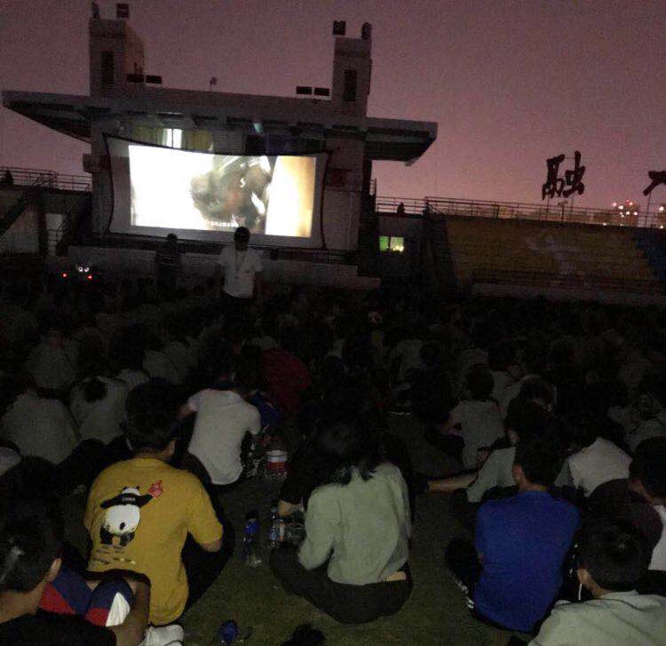 吃完晚饭后,我系的新生们六点就出寝,在班主任和班助的带领下,早早的就来到了操场集合,排着整齐的队伍,席地而坐,等待着电影的播放。《红海行动》是一部爱国主义影片,它的每个情节都扣人心弦,震撼人心,展现出中国军人百折不挠、前仆后继、不怕牺牲的精神。整个观影的过程中,没有人大声喧哗,随意走动,大家都目不转睛的盯着大屏幕,其中两场精彩的狙击手对决,紧张到让所有观影的学生屏住呼吸。