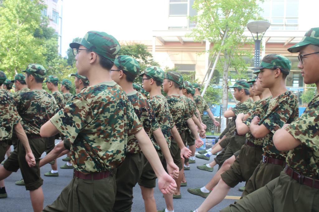 湛蓝湛蓝的天,一抹抹绿色的身影却依然坚定的站立着,稚嫩的面颊被太阳照耀得红扑扑的。我们是三营四连的学员,教官对我们非常的严格,不断纠正我们细节上的不规范,时刻提醒我们立正时要把中指紧贴裤缝,要抬头平视前方;当然,在严格的军训要求下,我们的教官也是很温柔的,时常注意我们的身体状况变化,如有不适,立马让我们休息或去医务室。