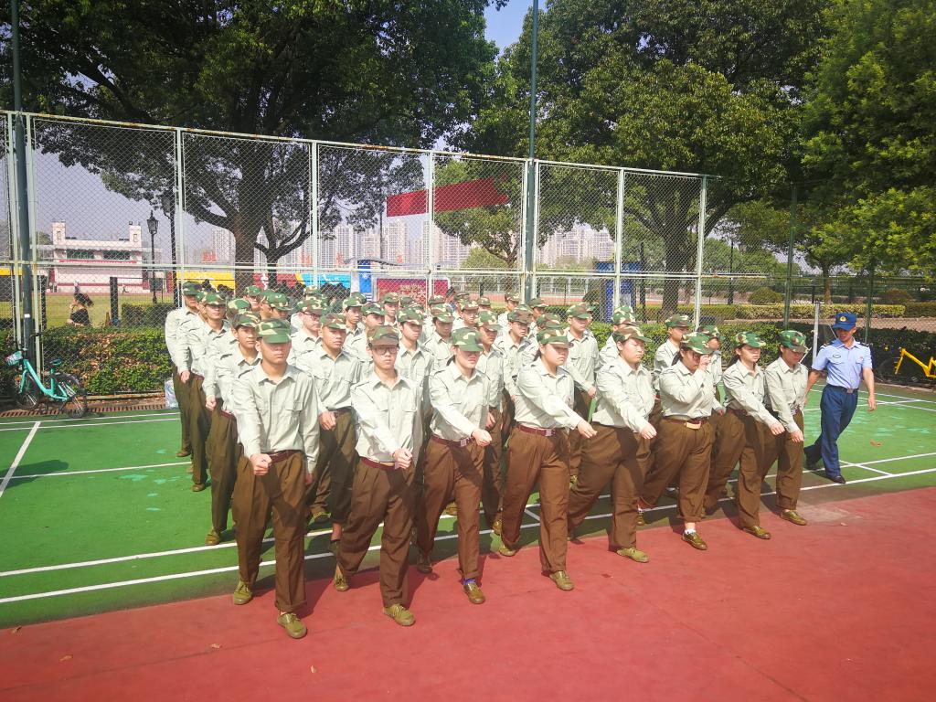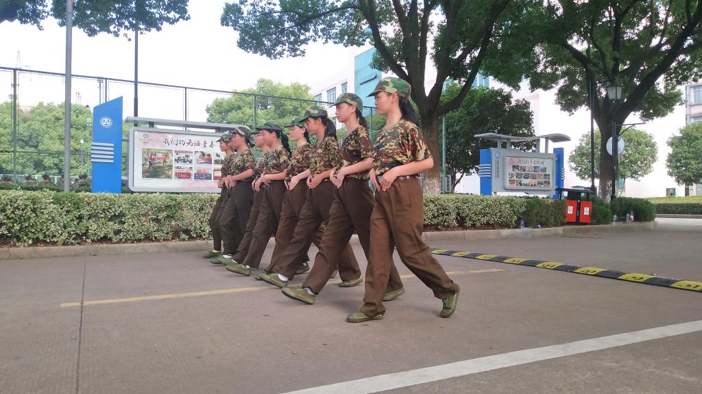 新生们迈着整齐划一的步子向前走去,走过阳光,走过树荫,走过无数次的疲倦与沮丧,而干净利落的踏步声将成为他们的入阵曲,陪伴新生走向未来的人生!(基础部 叶佳 胡海滨)