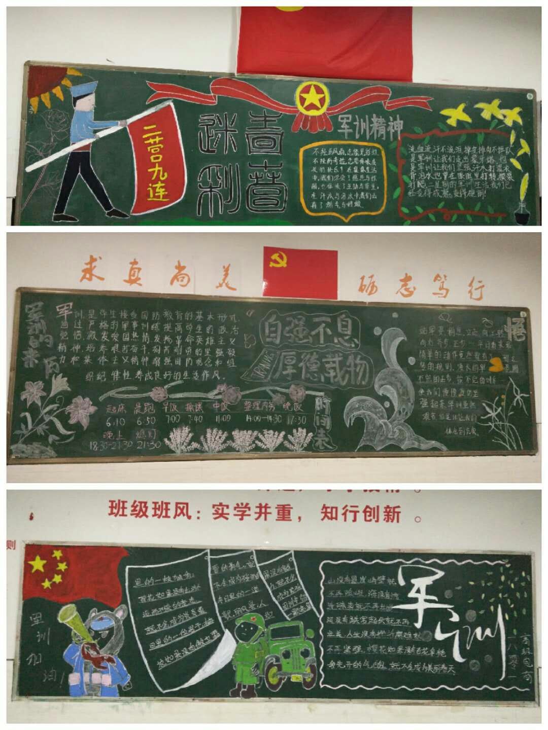 绿色军营,铁血青春。绿色是大地的颜色,也是军人的颜色,是值得每个人骄傲的颜色。正值青春年华的我们,在炎炎烈日中来到浙江交通技师学院,接受军训,为的就是挥洒我们的血汗,铸就钢铁般坚强的意志。说到军训,就会有黑板报。