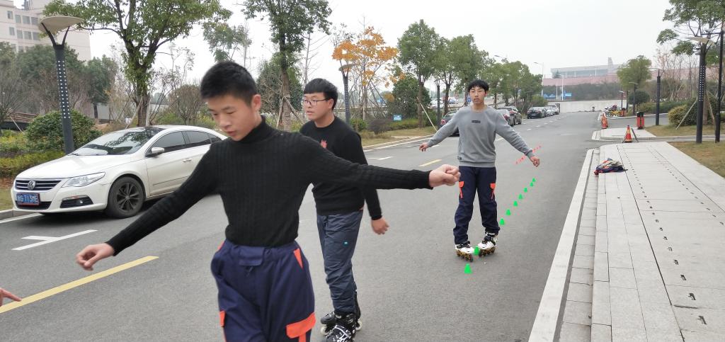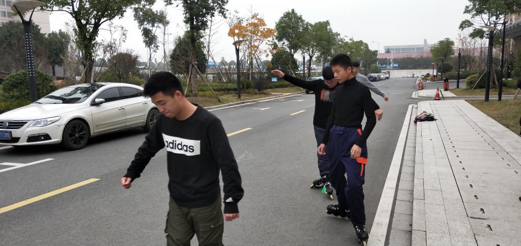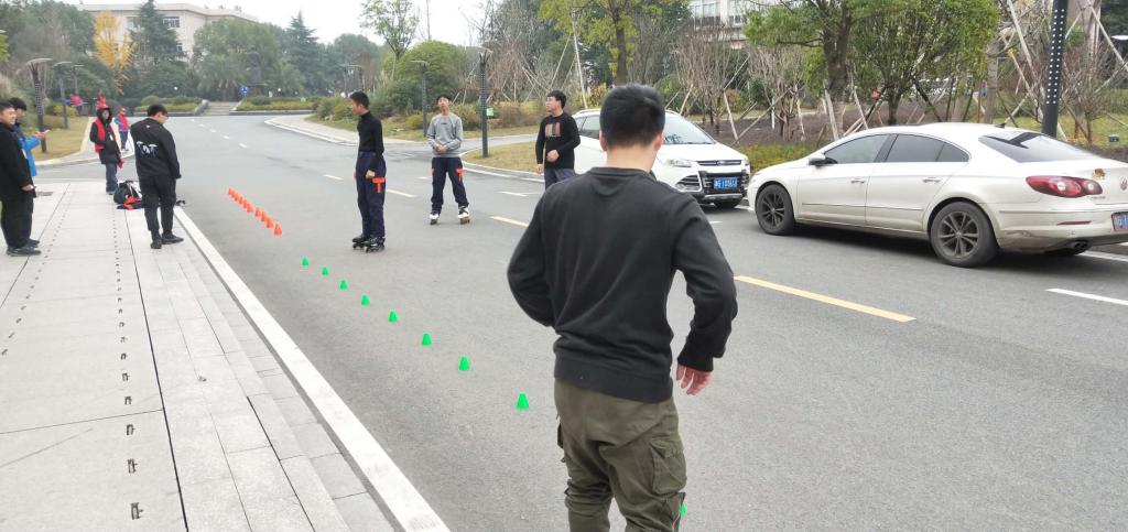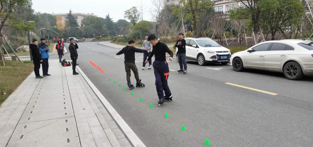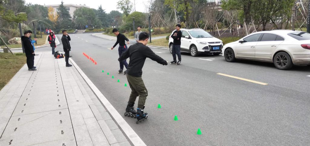 12月19日,5名成员在Free - 轮滑社社长杨俊杰的带领下于精艺楼前展开开课。