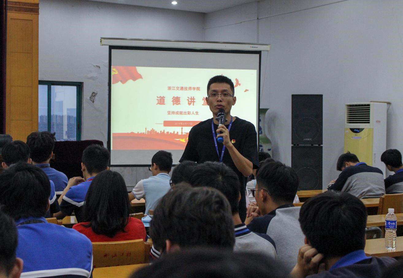 为提高学生素养,6月17日晚自修时间,学生处在综合楼九楼开展道德讲堂讲座,讲座主题为“坚持成就出彩人生”,全校两百多位同学聆听了本次讲座。