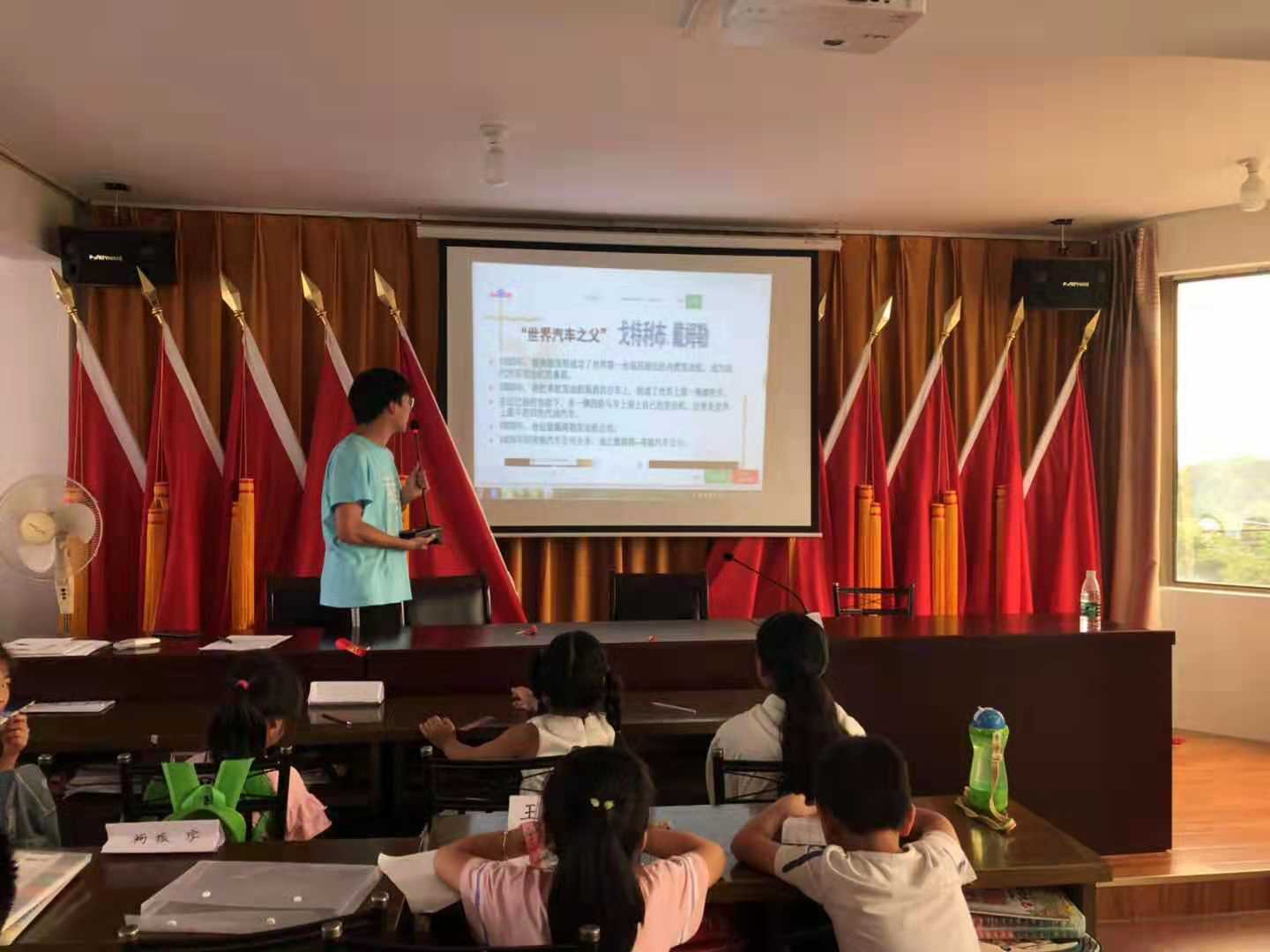 为了让孩子们感受汽车文化的魅力,我院支教队员把汽车知识带进课堂。在讲述 “汽车的发展史”中,为了能给他们有更直观的印象,支教队员们给孩子们介绍展示了福特的第一台汽车、卡尔·本茨的三轮汽车、“世界汽车之父”-卡尔·本茨与戈特利布·戴姆勒以及“流水线的生产”视频,并为孩子们普及了一些相对知名度比较高的车辆的车标,如:宝马、奥迪、丰田、福特、奔驰等。最后支教队员们为孩子们播放了我院巴哈赛车比赛等相关视频,让孩子们感受我院巴哈赛车的魅力。