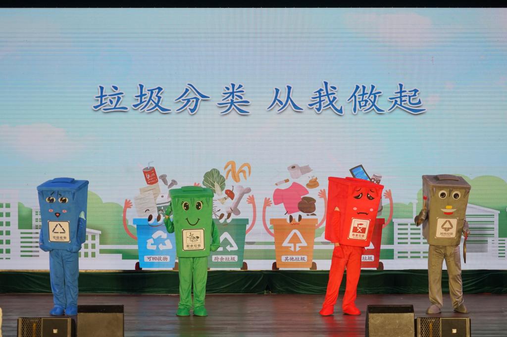 当晚的12个节目中,都是来自表演略带青涩的大学生团体,我院推选的“三句半--垃圾分类要先行”节目,采用金东元素方言、动漫垃圾桶的形式,顿时给场下的观众及孩子们带来了欢笑。