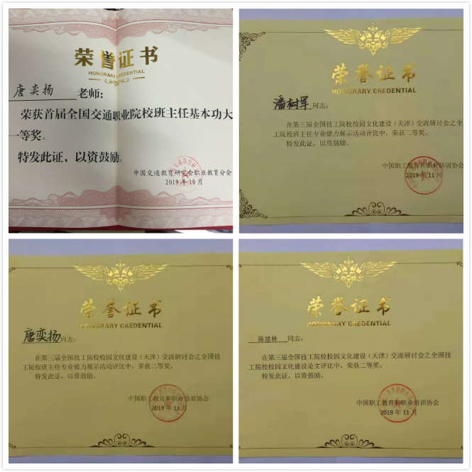 2.最荣耀的事。由工作室团队辅导的唐奕扬和潘树军两位老师,分别获得全国交通职业院校班主任基本功大赛一等奖和全国技工院校班主任职业能力展示活动二等奖。