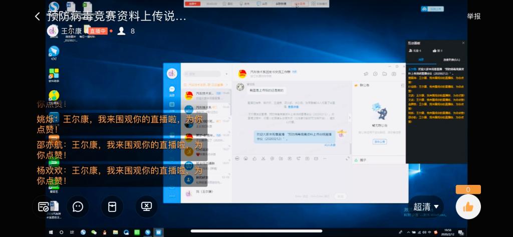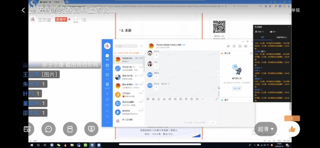 通过钉钉直播平台讲解,不仅使各班团支书明白了如何参与新型冠状病毒肺炎的科普知识竞赛,更使我系青年干部进一步了解新型冠状病毒肺炎预防的相关讯息,让我们从自身做起,共同打赢这次疫情防控的阻击战!(汽车技术系团总支 王尔康)
