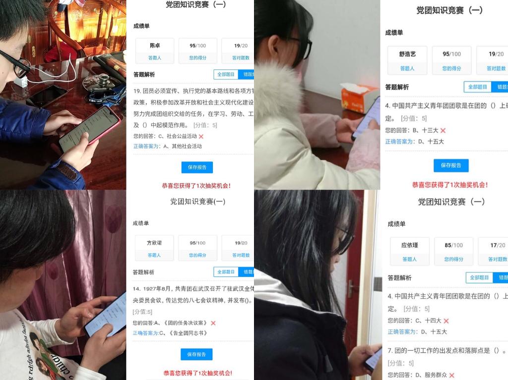 2020年2月17日,机电技术系团支部发起了线上党团知识竞赛活动。在活动发布后,同学们积极参与到竞赛中来。本次竞赛是以线上考卷的方式进行,在答题结束后,同学们就可以看到自己的得分情况,并查看错题解析,对自身进行及时的查漏补缺。