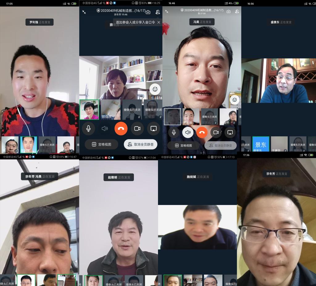 由于新冠疫情影响,师生都不能按时开学上课,本学期的教学都在线上开展,我校从2020年2月20日开始网课教学,到现在已经一个多月。线上教学彻底改变了传统的课堂教学模式,老师化身主播,学生转变成粉丝。机械制造教研室共有9位老师参与线上教学,在这一个多月的网络教学过程中,各位老师都有不同的感受。2020年4月9日星期四,下午16:10,在结束一天的线上教学后,机械制造教研室开展了本学期的第一次教研活动,教研活动以视频会议的形式,在线上开展。本次教研活动,系部领导宗冬芳主任,副主任傅凯,教务员傅思佳受邀参加。