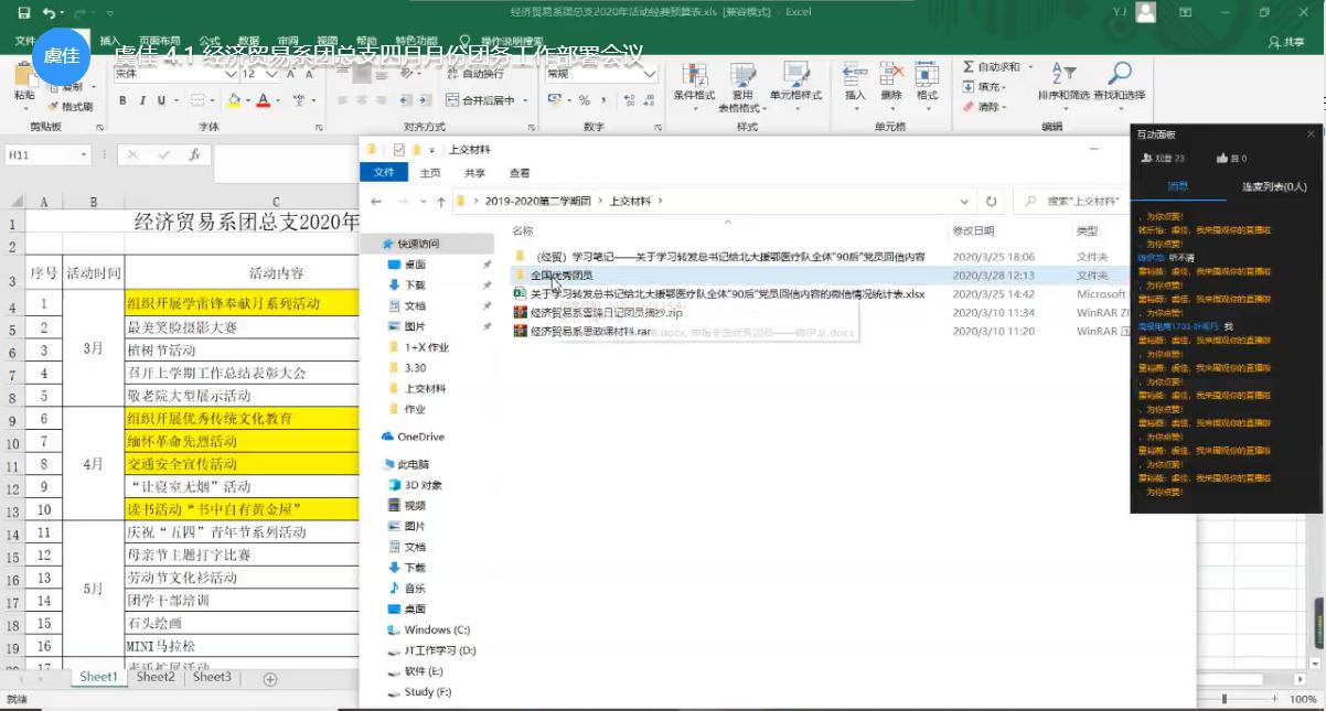 转眼就到了四月份,为了保证团务工作的同步进行,经济贸易系团总支于4月1日在钉钉直播平台召开四月份活动部署会议。本次会议由虞佳老师主持,经济贸易系全体团干部共同参与。