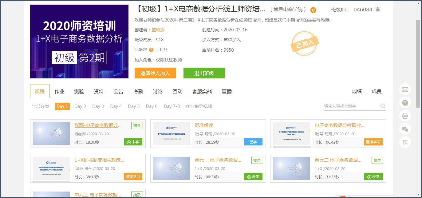 为积极响应利用数字化资源优势,实现疫情防控期间“停课不停教、停课不停学”的目标,提升教师的专业技能和职业素养,电子商务教研室首派八名教师参加了由北京博导前程信息技术股份有限公司举办的第二期“电子商务数据分析职业技能等级证书”线上师资培训。此次线上培训课程设计贯穿数据采集、数据分析与处理、数据描述分析、数据监控与报表制作等商务数据分析处理典型工作过程。对1+X政策及行业发展解读、标准及书证融通方案解读、案例及实操分析、信息化教学设计等培训讲解,邀请各平台企业专家来直播室进行业案例分享,实操案例讲解等,整个培训紧凑有序,收获满满,八名教师均通过考核取得《电子商务数据分析职业技能等级证书》。