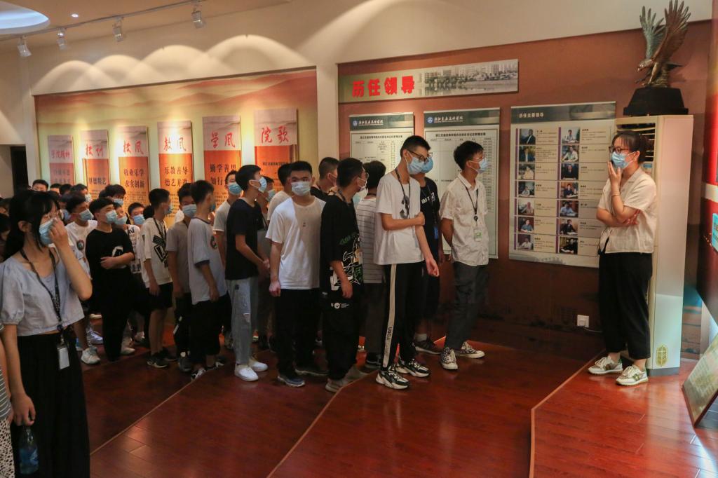 一幅幅泛黄的老照片,一段段尘封的历史往事、一件件重要的参赛奖杯,都激发了刚入校的新生们莫大的兴趣。同学们簇拥在讲解员的周围,聚精会神地聆听着我院发展历程讲解,流露出对学校的敬仰、自豪之情。