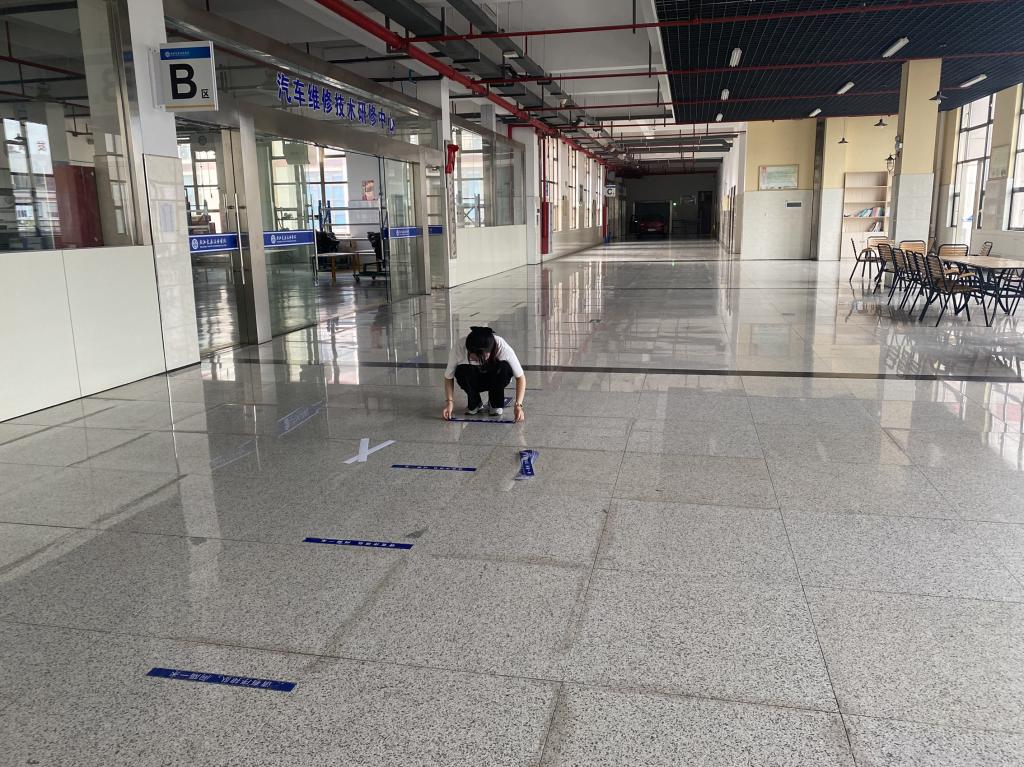 为迎接学生返校,保障教学安全,教务科研处组织开展教学场所防疫布置工作,在走廊、楼梯等人员密集场所粘贴一米线,在教学楼各个醒目位置张贴了各类防疫标语,在教室、教学楼各个出入口粘贴进出口标识。