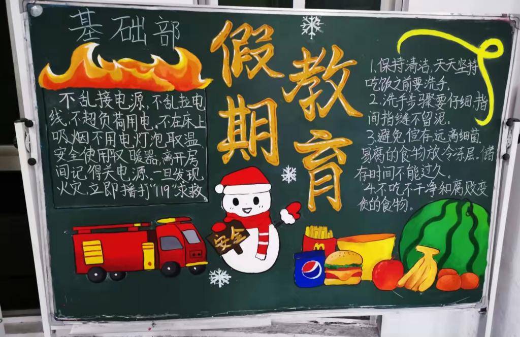 本期黑板报的安全宣传教育内容涉及消防火灾、疫情防控、安全用电、交通安全、财产安全、食品安全、网络安全等安全教育主题。各公寓楼围绕安全教育主题对黑板报进行了精心的设计,主题鲜明、设计新颖、内容充实、图文并茂,体现了知识性、趣味性与实用性的统一,宣讲了安全知识,强化了安全措施,营造了浓厚的安全教育氛围。