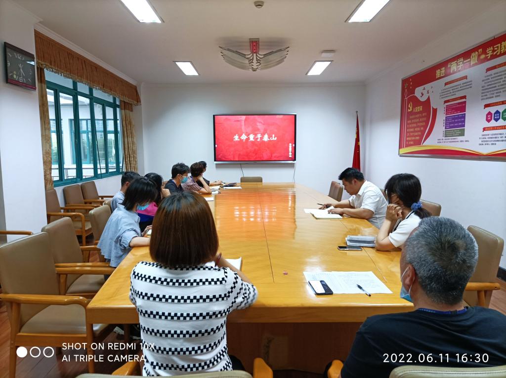 最后,部门全体人员观看了专题片《生命重于泰山》,蒋处强调,邻近期末,要求大家结合6月份安全生产月,高度重视安全制度、切实加强舆情管控工作,增强防范诈骗意识,保护好人身和财产安全。