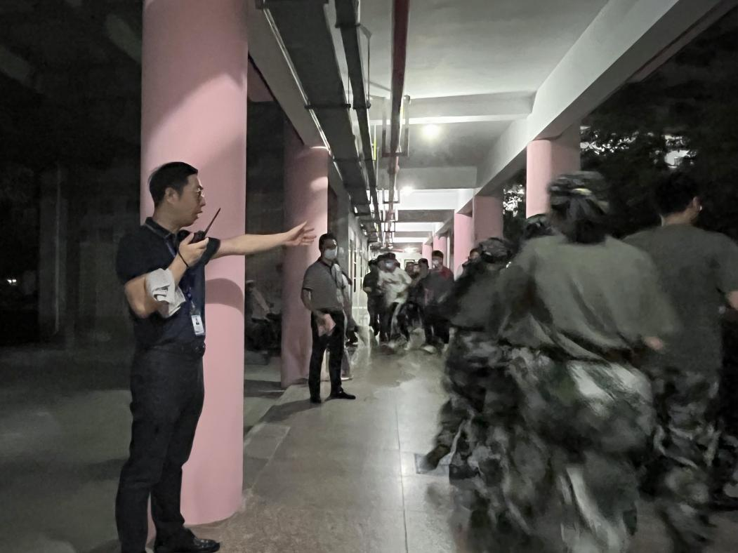 为进一步树立安全第一思想,强化学生安全教育,提高学生的自我防范意识和面对突发事件的综合应急处理能力,提高自救互救的能力,根据学校新生军训入学计划,9月9日晚19:30分,我院举行了消防安全教育和紧急疏散演习。活动由保卫处处长何桂发、学生处处长蒋莘苗指挥,空军94922部队51名参训教官、金东消防救援大队6名消防官兵现场指导。2022级2400余名学生及系部学生管理员、班主任参加。