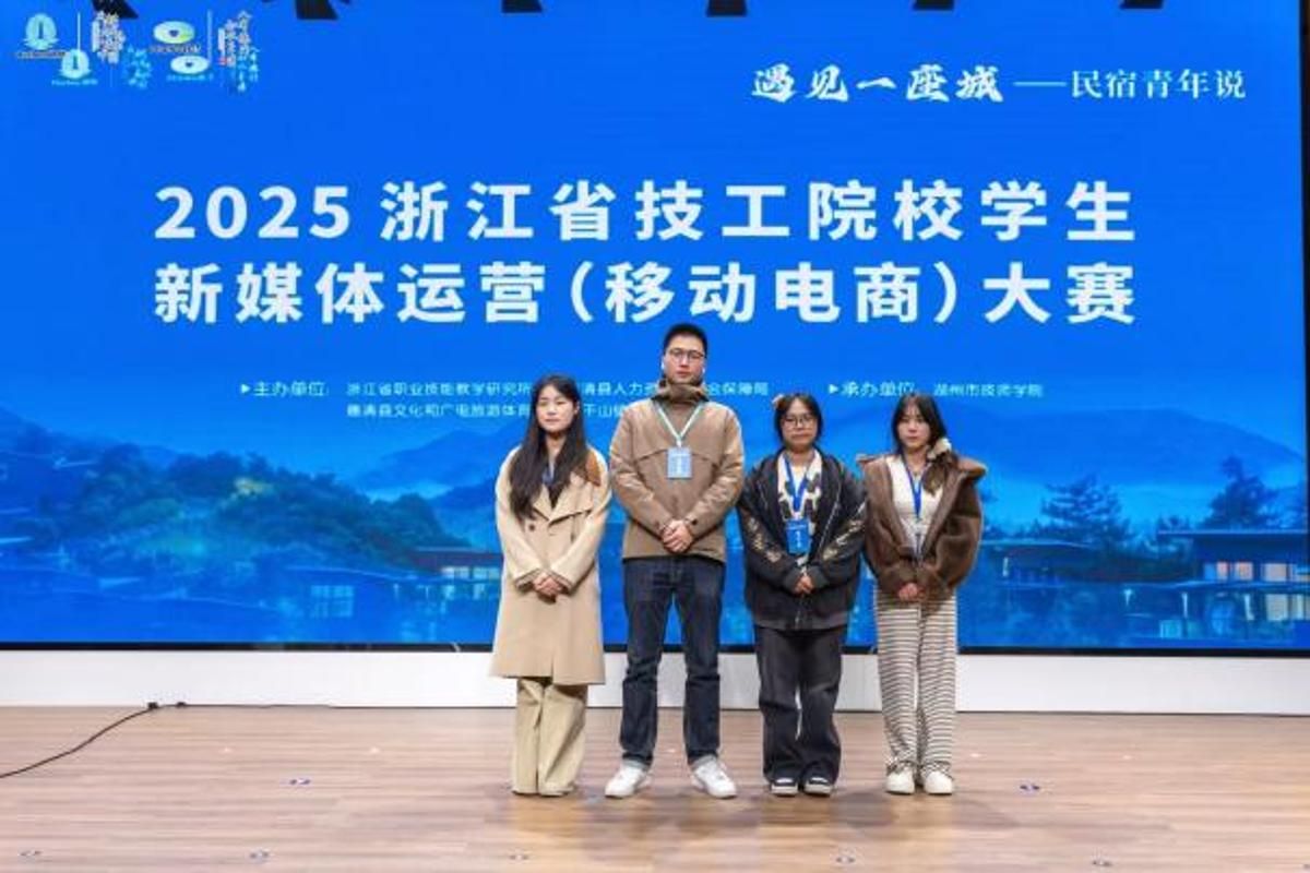 近日,在圆满落幕的2025年浙江省技工院校学生新媒体运营(移动电商)大赛决赛中,财经商贸学院两支学生团队凭借创新的运营策略、扎实的专业技能与高效的团队协作,从五十余支队伍脱颖而出,喜获二等奖(第二名)与优胜奖(第十名),以亮眼成绩彰显学院在数字经济人才培养领域的高质量发展成果!在此,向获奖学子致以最热烈的祝贺,向深耕教学一线、悉心指导的教师团队致以最诚挚的敬意!
