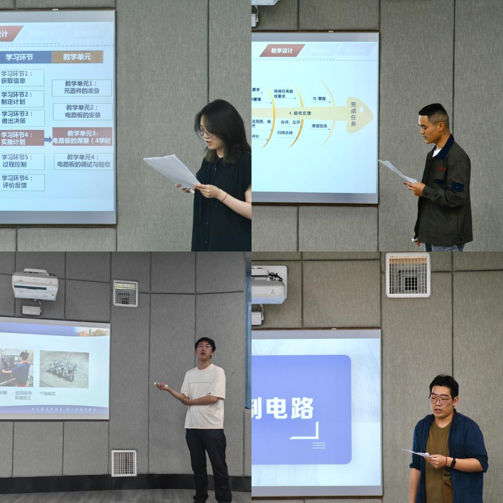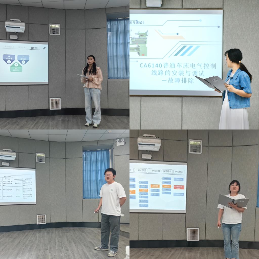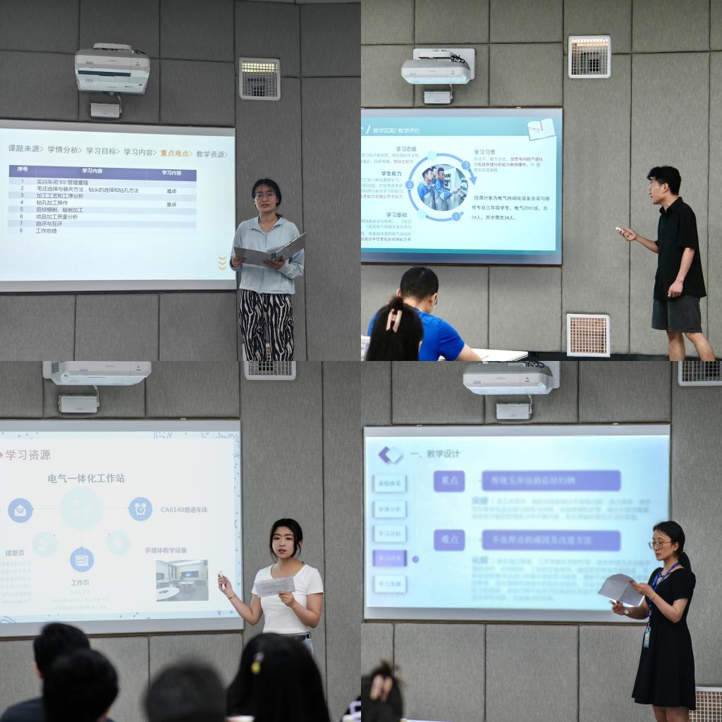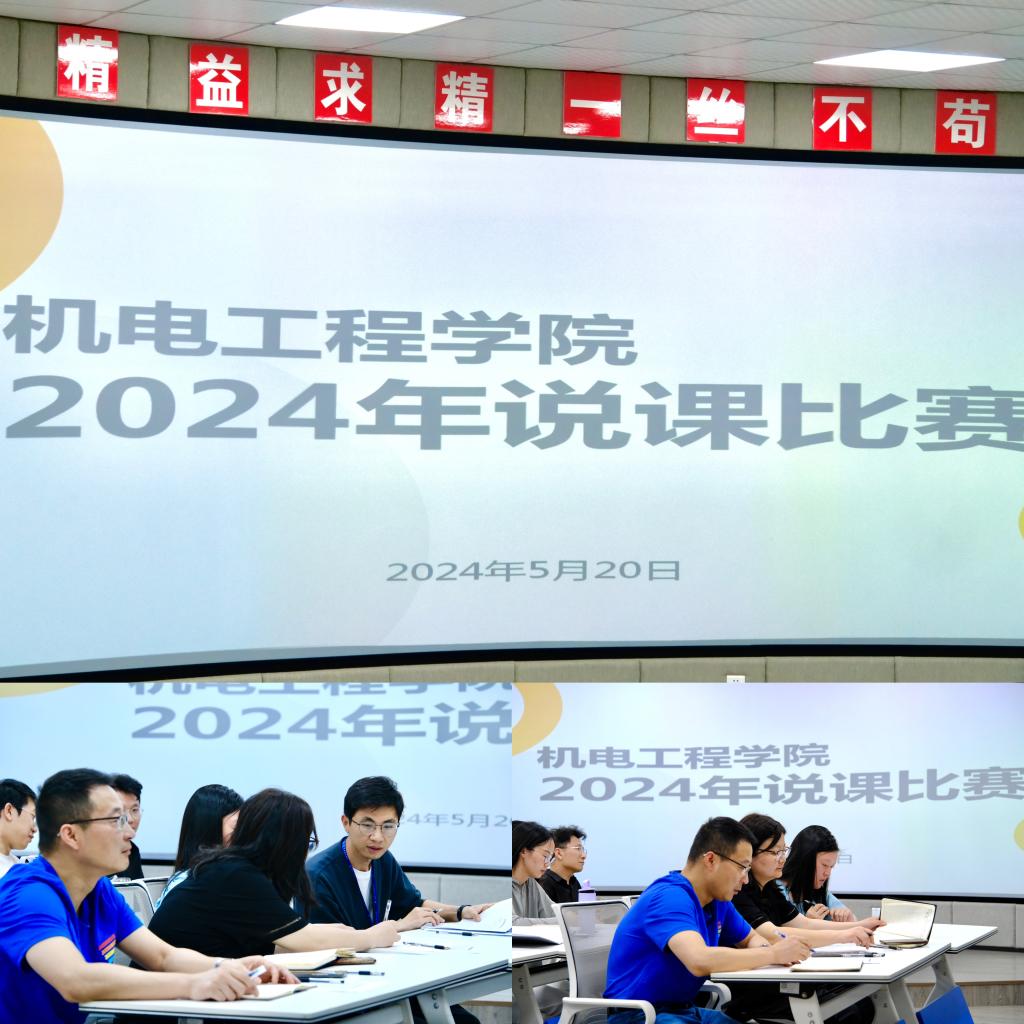 九层之台,起于垒土;千里之行,始于足下。为提升我院教师的教学业务能力,优化教学过程,提高教育教学质量,促进交流与学习,达到以“赛”促“研”、以“研”促“教”、以“教”促“学”的目的,机电工程学院于5月20日在培英楼智慧教室开展2024年说课比赛,由机电工程学院党支部书记、院长傅凯、机电工程学院教学副院长傅思佳、一体化专业教师毛云江、黄小花担任评委,本次比赛共有17位老师报名参赛,全体教职工共同参与。