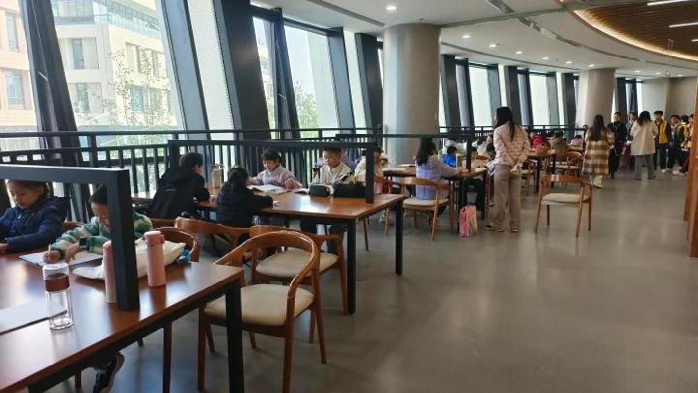 阅览室中,轻柔的翻书声与细碎的交流声交织。孩子们捧着绘本认真翻阅,遇到感兴趣的内容与身边伙伴小声分享,偶尔举手向老师提问,老师俯身倾听、耐心解答,整个课堂安静却不沉闷,满是专注与求知的气息。