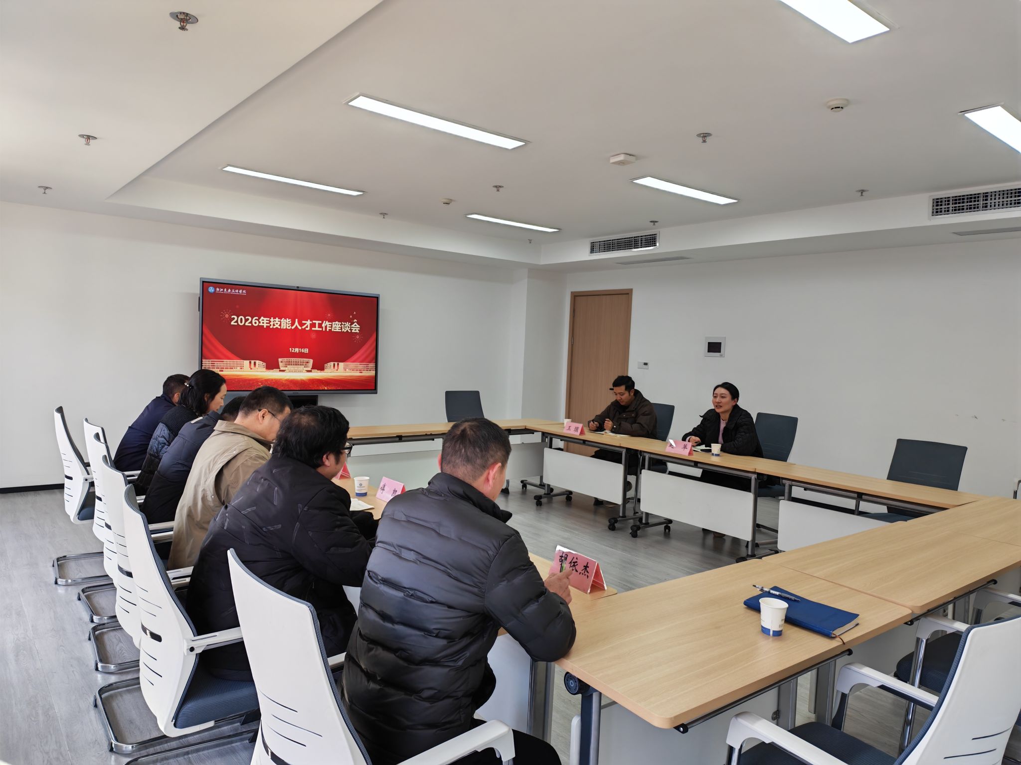 12月16日下午,在学校启行楼307会议室召开2026年金东区技能人才工作座谈会。金东区人力资源和社会保障局副局长赵萃、职业技能管理服务中心科长王瑱莅临指导,二级学院院长参加会议,会议由继续教育学院院长胡依杰主持。