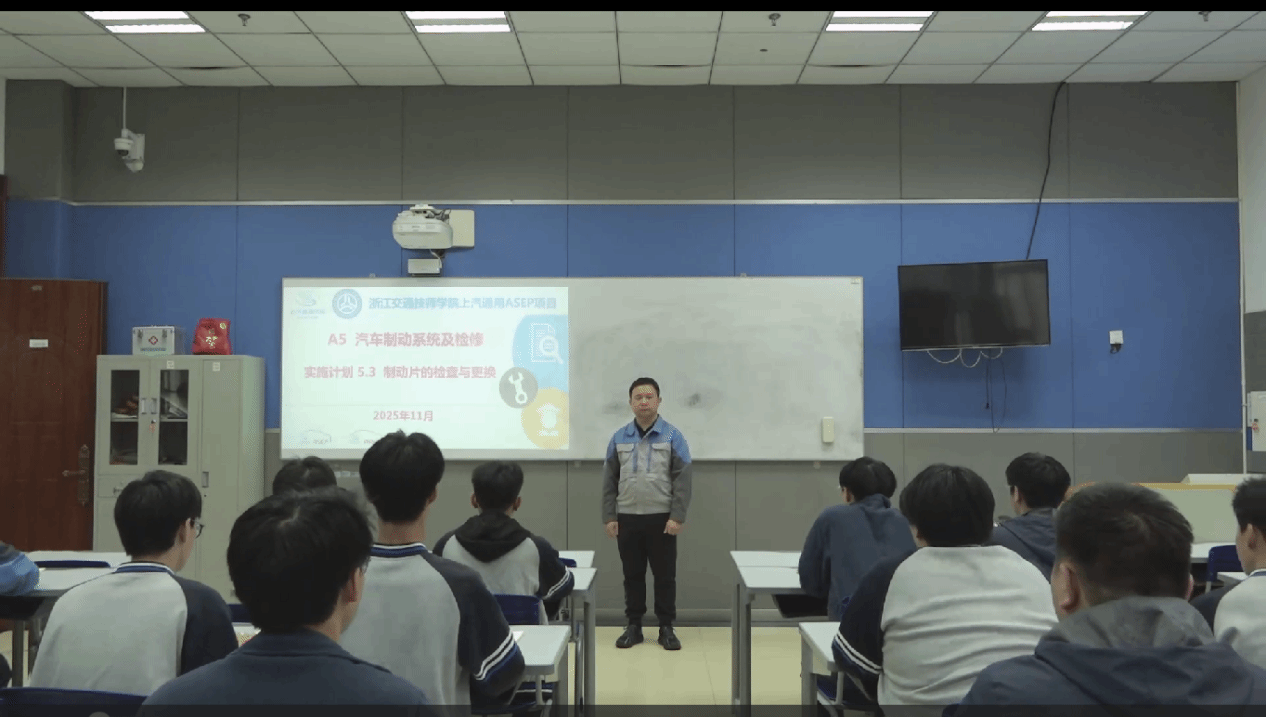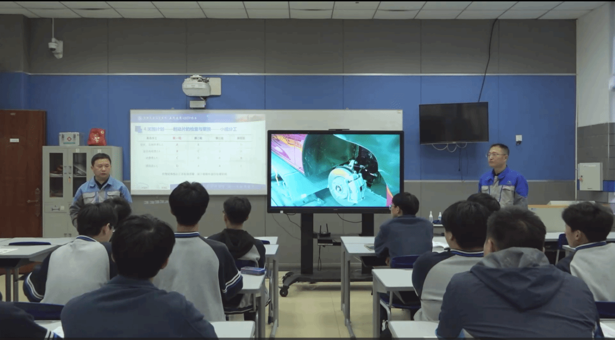 本次公开课,两位老师选取了《A5汽车制动系统及检修模块》中“制动片的检查与更换”项目实施教学。通过制动器结构、工作原理的讲解、再到带领学员归纳总结制动片拆装检查的操作步骤规范和注意事项,再进行教师操作示范讲解、安排学生分组实践操作,最后开展场地5S整理和评价反馈。整个教学以工学一体化教学模式为框架,以上汽通用汽车维修手册规定为标准,不仅完成了学生的技能操作学习,还注重了学生的职业素养的培养。公开课后上汽通用公司ASEP项目管理中心的领导也对课程教学做出了点评,并提出了改进意见,为后续学院上汽通用ASEP项目教学改革指明了方向。(汽车程学院 田宝春)