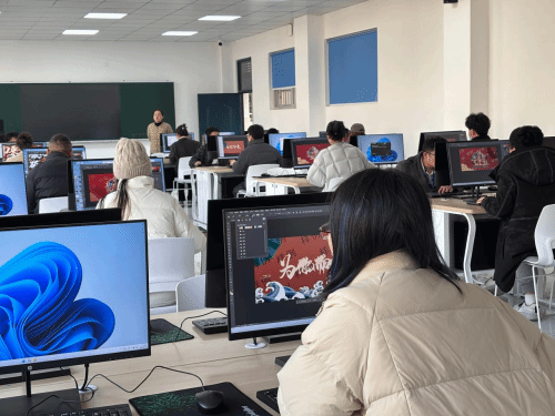 全媒体运营赛项涵盖文案策划、素材处理、内容制作开发、数据分析四大核心板块。本次测试聚焦“素材处理”板块,赛题采用提前一个月公布的形式,为教师预留了充足的准备时间,便于其精进技能。测试过程中,全体教师以严肃认真的态度投入其中,熟练运用专业软件处理图像素材,充分展现了扎实的专业功底与积极进取的精神风貌。