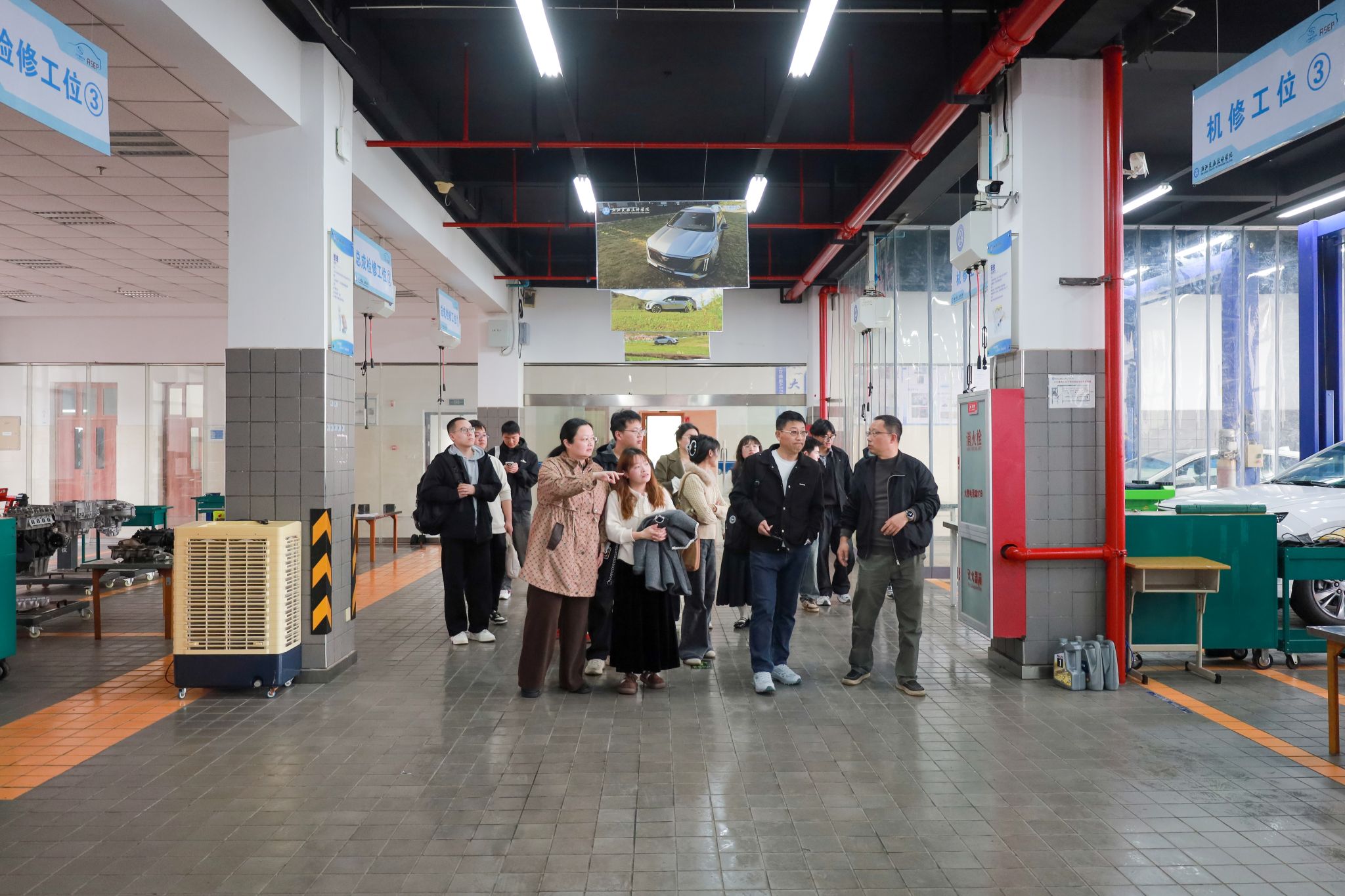 调研伊始,沈苏苏主任一行首先前往精艺楼,深入考察学校汽车专业建设情况。参观过程中,调研团实地查看了汽车专业实训场地、教学设施配置,详细询问了专业课程设置、实训教学模式、技能人才培养路径等核心问题,对学校汽车专业立足实践、贴合产业需求的办学思路给予高度关注。随后,调研团聆听了汽车专业公开课,直观感受学校教师生动高效的教学方式、工学一体的教学特色。