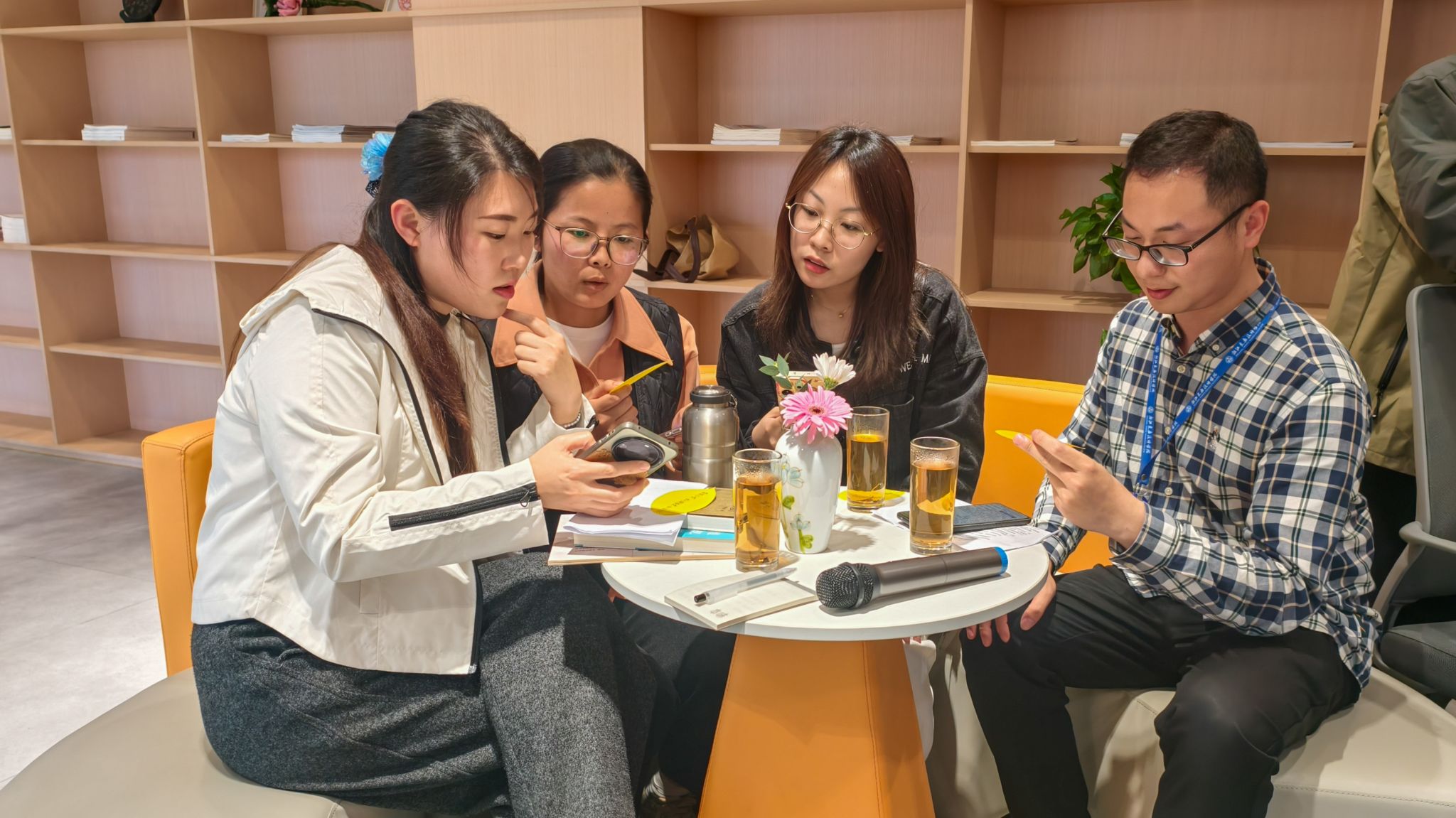 在随后的职工诗歌分享环节,人文学院的崔光慧、徐宁以及金华籍诗人罗帆老师分别结合自身体会,以三本诗集解锁诗歌里春天的千般模样。现场书友在字里行间,遇见苏轼的豁达、海子的炽热,以及《第二音阶》里的细腻韵律。