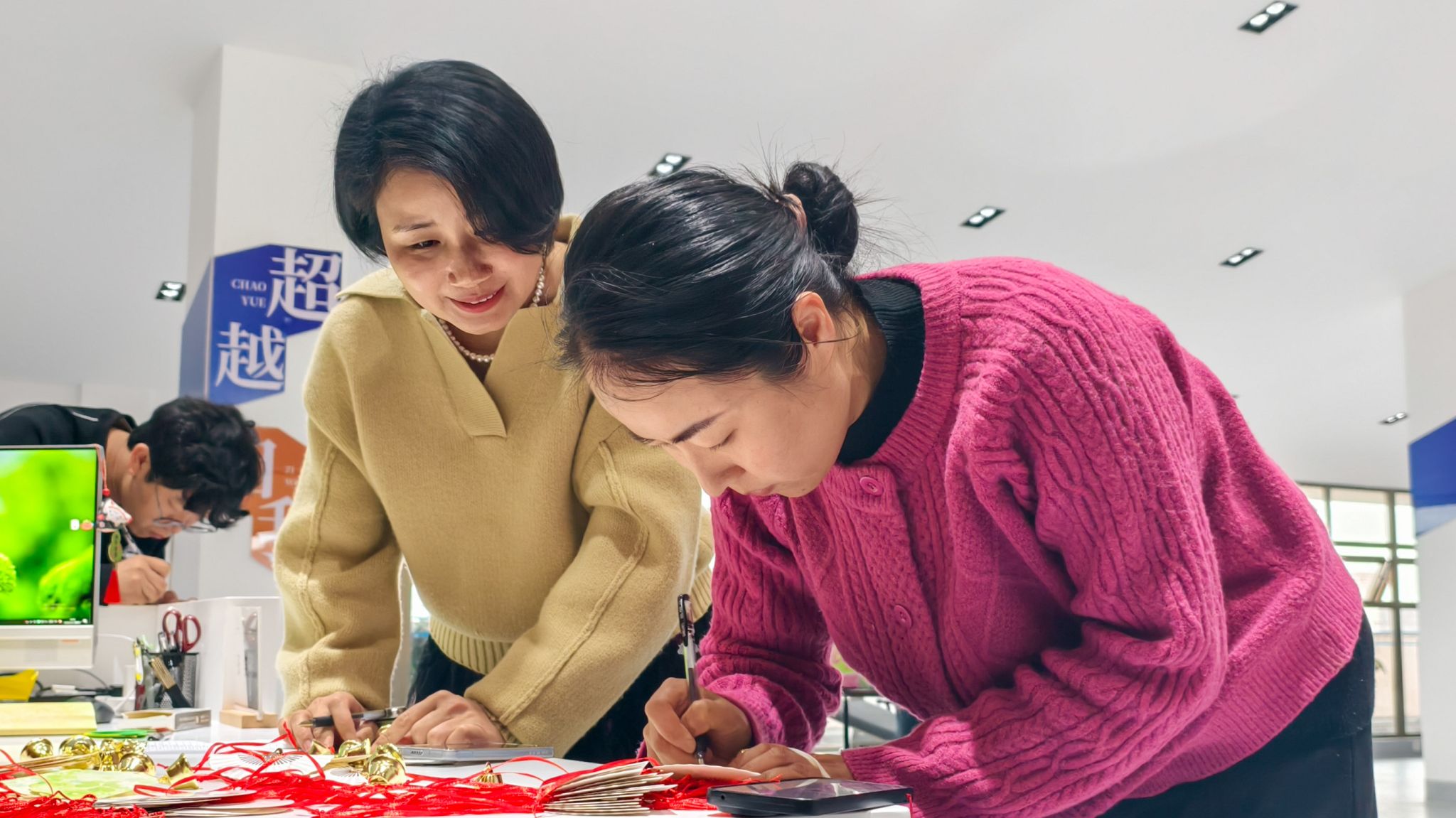 活动签到处,教职工任选一枚叶片书签,写下你心中的春日短句或诗意箴言,并亲手将叶片挂于枝桠。书签上有 “桃之夭夭,灼灼其华” 的明艳,有 “诗是远方的灯” 的笃定,也有 “春风拂过讲台” 的专属感悟。教职工的书写让这棵原本普通的树绽放出了诗意的光芒。