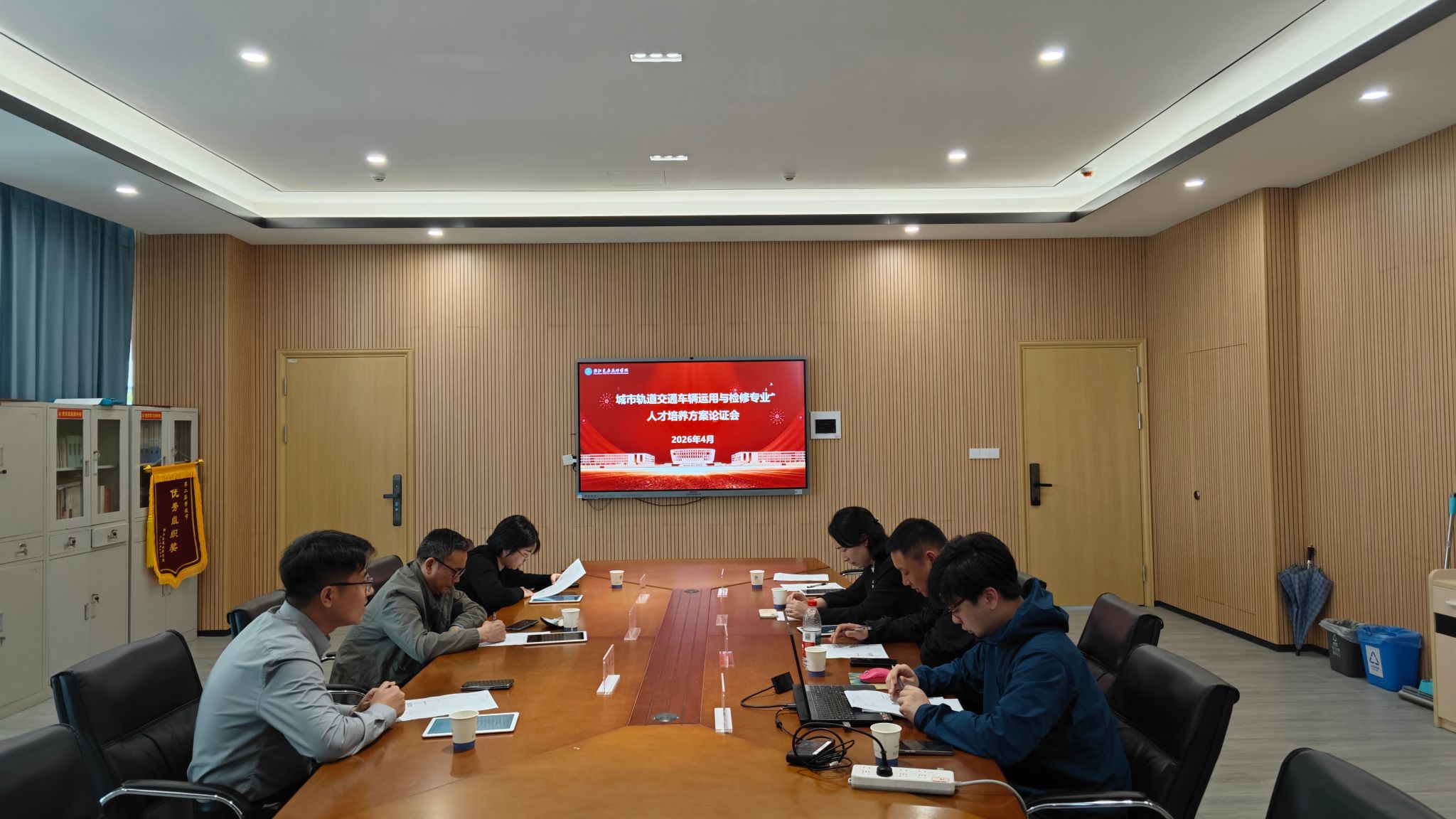 会议重点围绕两大核心内容展开论证。在城轨车辆仿真装调工作站项目论证中,项目负责人介绍了该高技能人才专项项目的规划:建设周期为2026年5月至11月,总经费49万元,目标是打造贴合教学、技能认定、竞赛及企业人才培养需求的一体化教学工作站。专家们肯定了项目的实用性,就设备配置、经费使用等提出针对性建议。