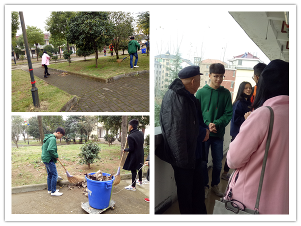 11月27日,我院信息技术系学生会组织同学们参加了社会敬老活动。同学们前往多湖敬老院,帮助老人们做一些力所能及的事。带上清洁球、橡胶手套,男生们一起将敬老院里里外外打扫了一番。连日来雨水连绵湿气重,女生们将老人的被褥和厚重的衣物拿到阳光处晒晒,这样老人晚上睡觉能暖和些。结束了打扫工作,同学们将行动不便的老人用轮椅推到空地上晒晒太阳,陪他们聊天,为他们表演小节目。