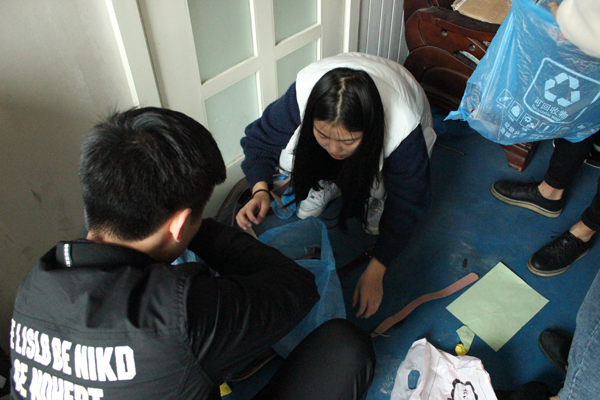 活动当天阴雨绵绵,但同学们的热情却丝毫不减,学生干部们在系学生会副主席许方君、干彬倩的带领下,兴致勃勃地参与到义务清扫活动中来。他们团结一致、分工合作,充分发挥学生动手能力,帮助青少年宫的老师搭建起若干个铁质收纳架,并将衣物、学习用品等进行归类整理,整个活动井然有序、气氛良好。